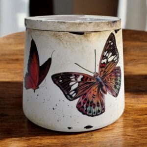 Kelebek Desenli Dekoratif Kutu – El Boyaması Kapaklı Kavanoz 9x9x8,5 cm