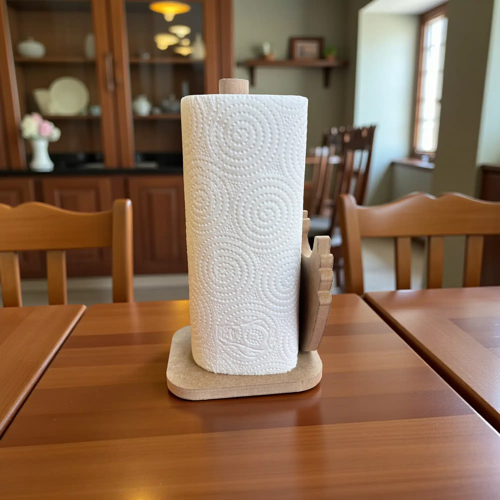 Ahşap figürlü kağıt havluluk ile mutfak tezgahınızda hem işlevsel hem de sevimli bir görüntü. Figürler, mutfağınıza country tarzı bir hava katar.