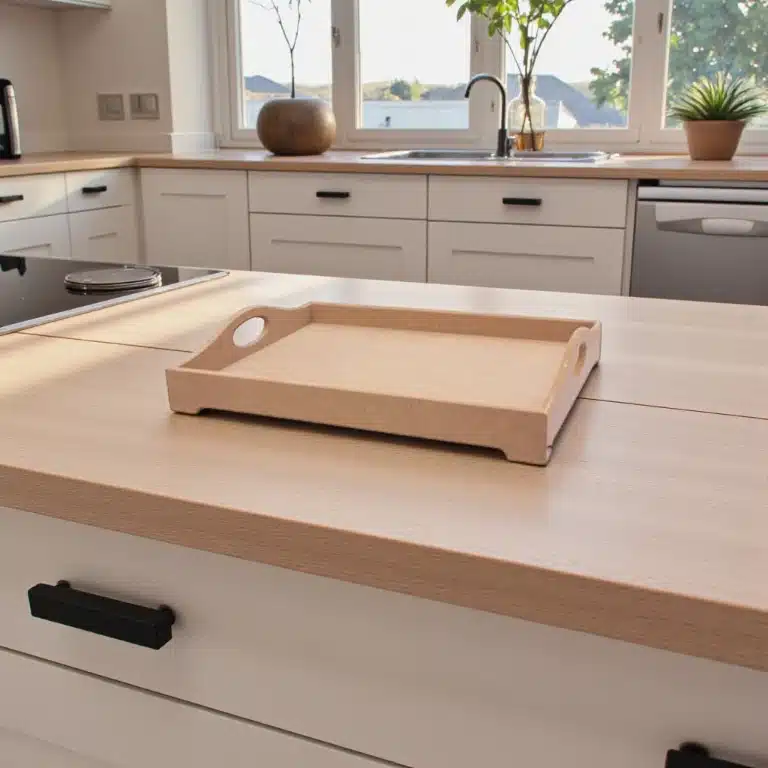 Dekorasyon Önerisi: Bu tepsiyi kırık beyaz veya krem tonlarına boyayıp kenarlarına hafif zımpara ile eskitme yaparak “Country/Rustik” bir hava katabilir; mutfak tezgahınızda yağlık, sirkelik ve baharatlıklarınızı toparlayan şık bir stand olarak kullanabilirsiniz.