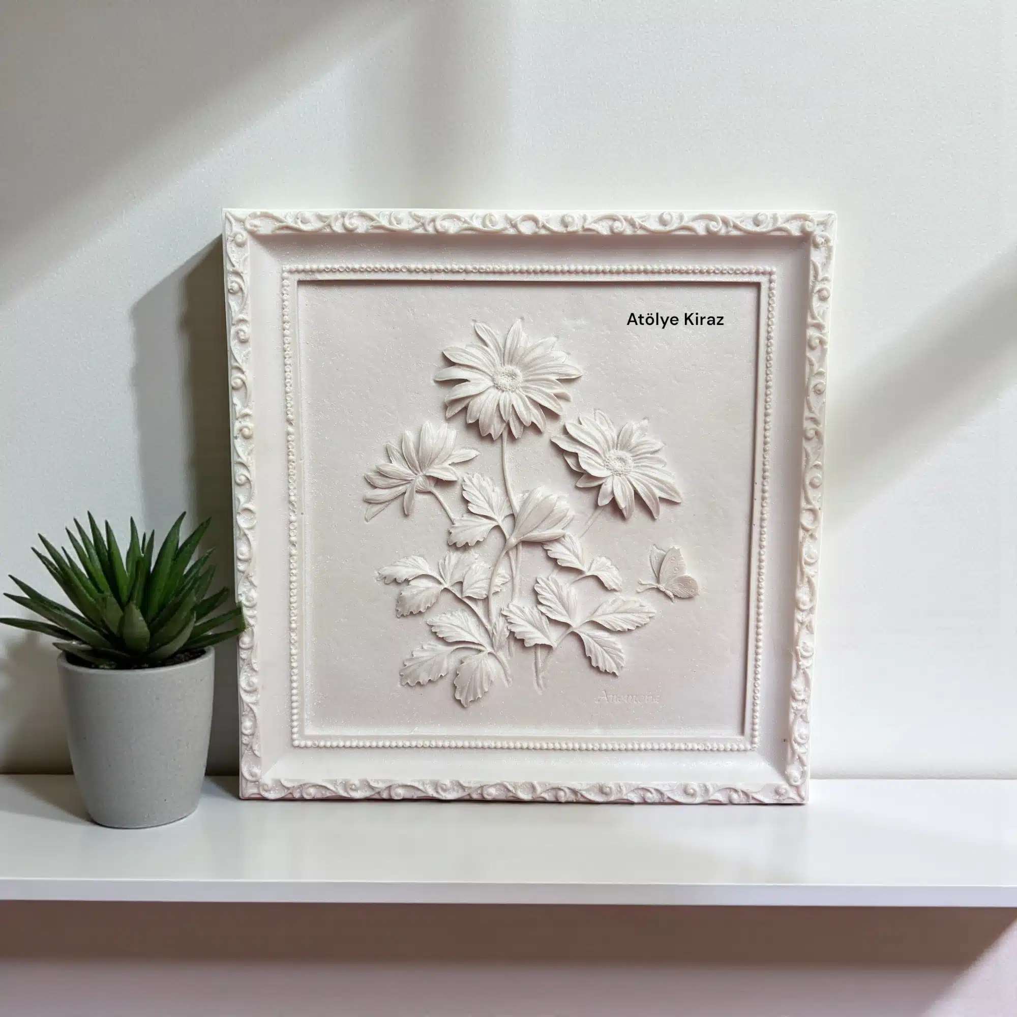 Duvarlarınızda sanatsal ve kişiselleştirilmiş bir atmosfer yaratın! Atölye Kiraz imzalı Boyanabilir Anemon Çiçeği Panosu, zarif çiçek ve kelebek detaylarıyla evinize doğanın huzurunu getirir. Klasik çerçeve içine yerleştirilmiş bu kabartma figür, hobi sanatçıları ve ev dekorasyon tutkunları için benzersiz bir projedir.