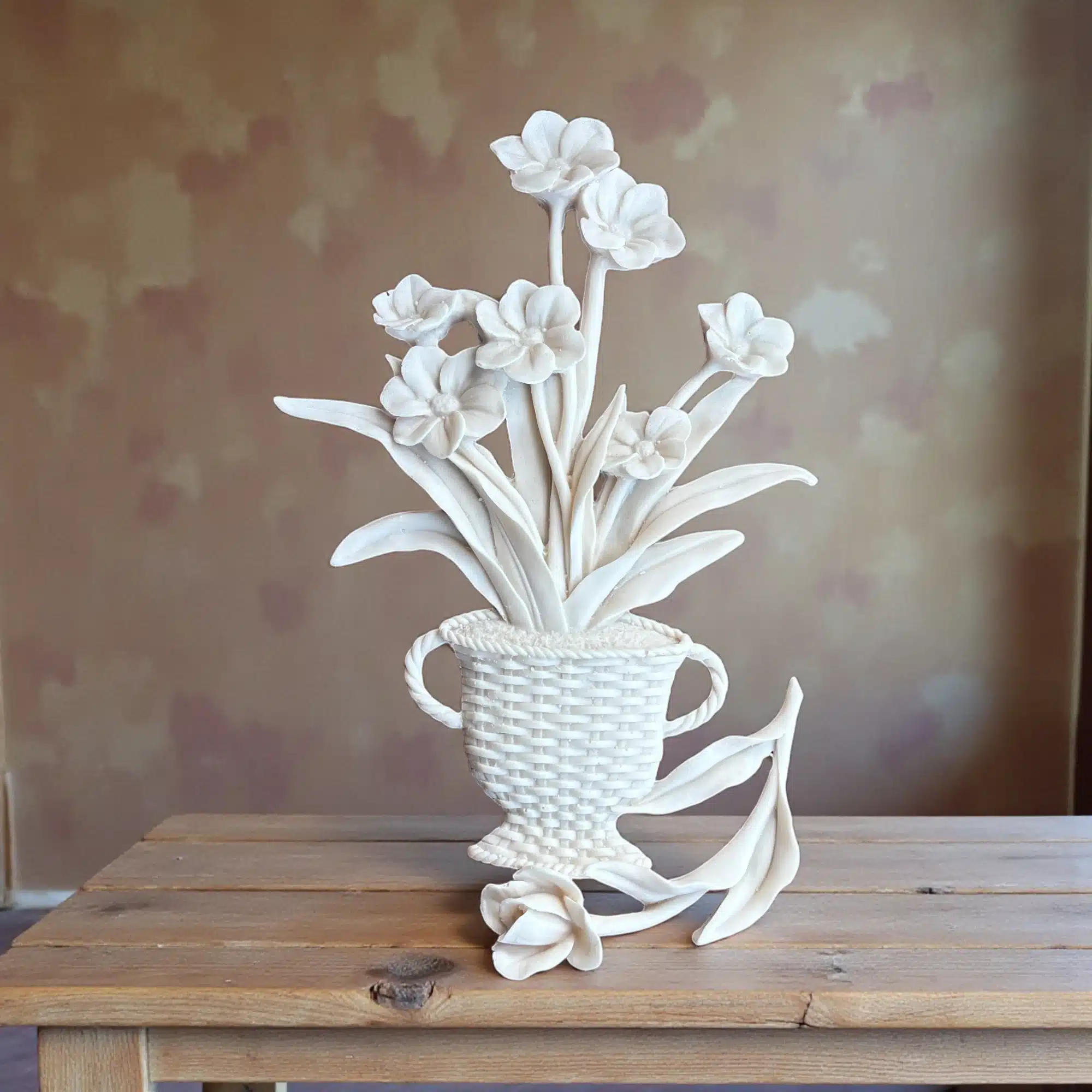 - Gerçekçi Dokular: Sepet kısmındaki hasır örgü detayları ve çiçek yapraklarının kıvrımları, yüksek döküm kalitesiyle belirgindir.
