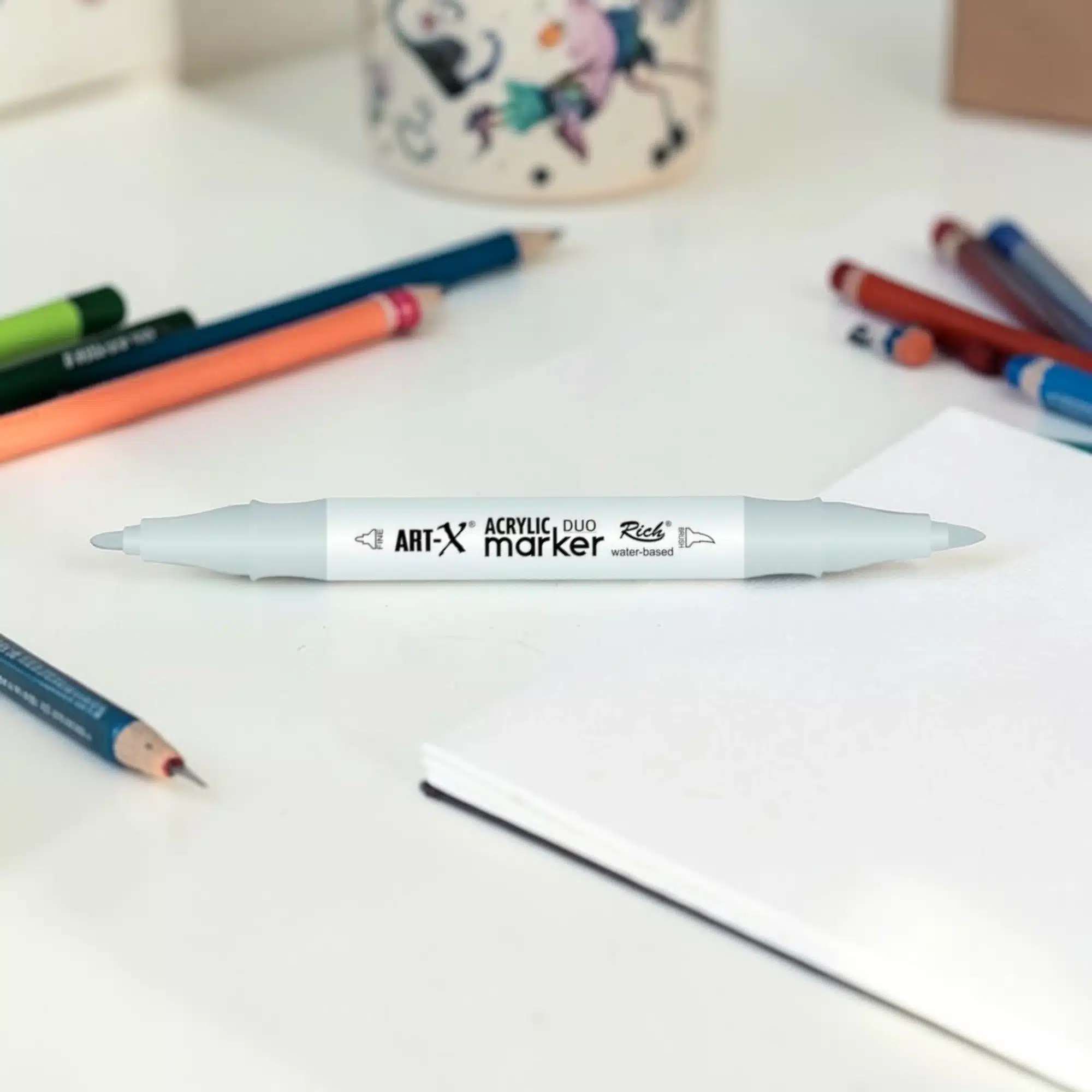ART-X Acrylic Marker Duo 130: Çift Uçlu Akrilik Markör Kalem-Beyaz