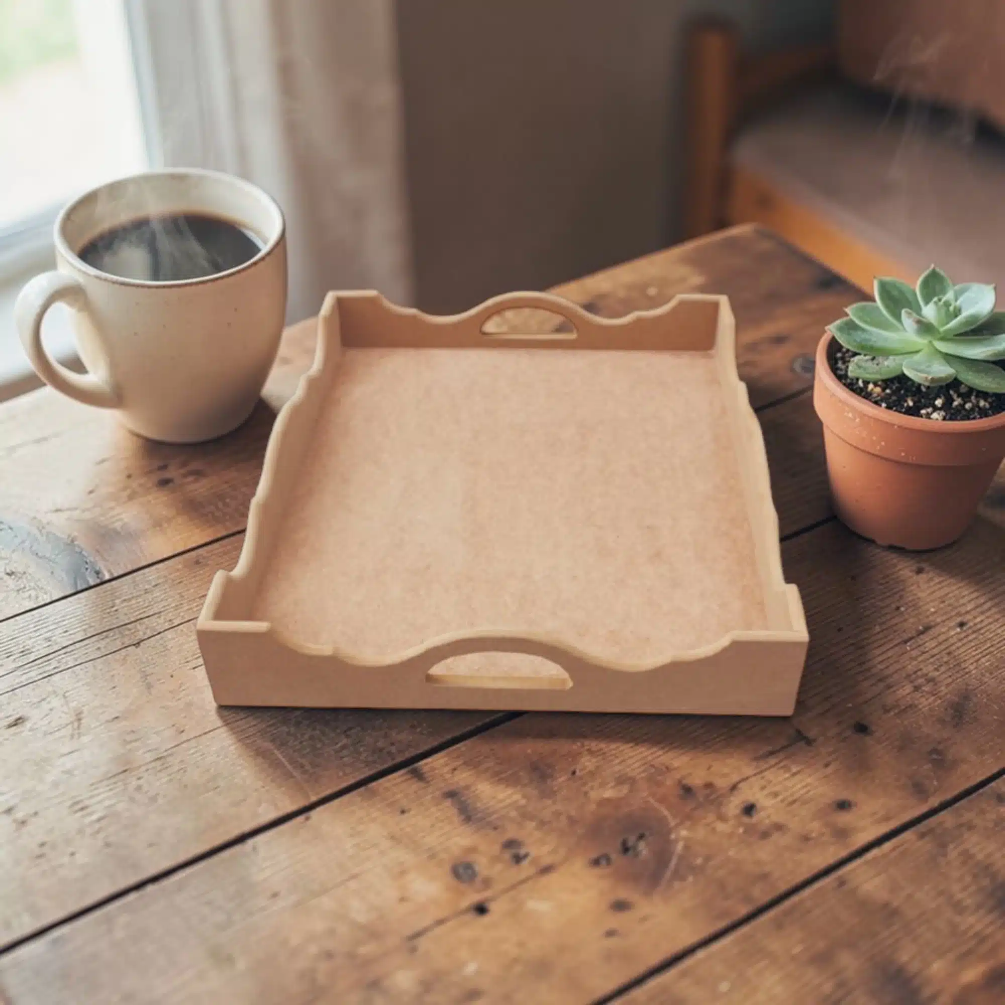 Birinci sınıf ham ahşap (MDF) malzemeden üretilen bu tepsi, 28 cm en, 38 cm boy ve 5,5 cm yükseklik gibi oldukça ideal ve tatminkar ölçülere sahiptir. Zımpara gerektirmeyen pürüzsüz yüzeyi; akrilik boyama, dekupaj kağıdı kaplama, eskitme veya stencil (şablon) çalışmaları için kusursuz bir zemin sunar. Tamamen kendi zevkinize göre süsleyerek evinize özel bir başyapıt yaratabilirsiniz.