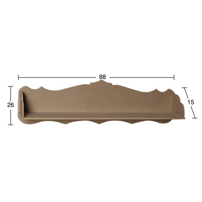 Birinci sınıf ham ahşap (MDF) malzemeden üretilen bu ihtişamlı raf, 88 cm genişliği ile oldukça cömert bir sergileme alanı sunar. 26 cm yüksekliği ve 15 cm derinliği sayesinde kitaplarınızdan biblolarınıza, saksılarınızdan çerçevelerinize kadar pek çok eşyayı güvenle taşır. Pürüzsüz yüzeyi ve ham rengiyle, ister doğal haliyle rustik bir atmosfer yaratın, isterseniz de evinizin renk paletine uygun olarak boyayıp kendi tarzınızı konuşturun.
