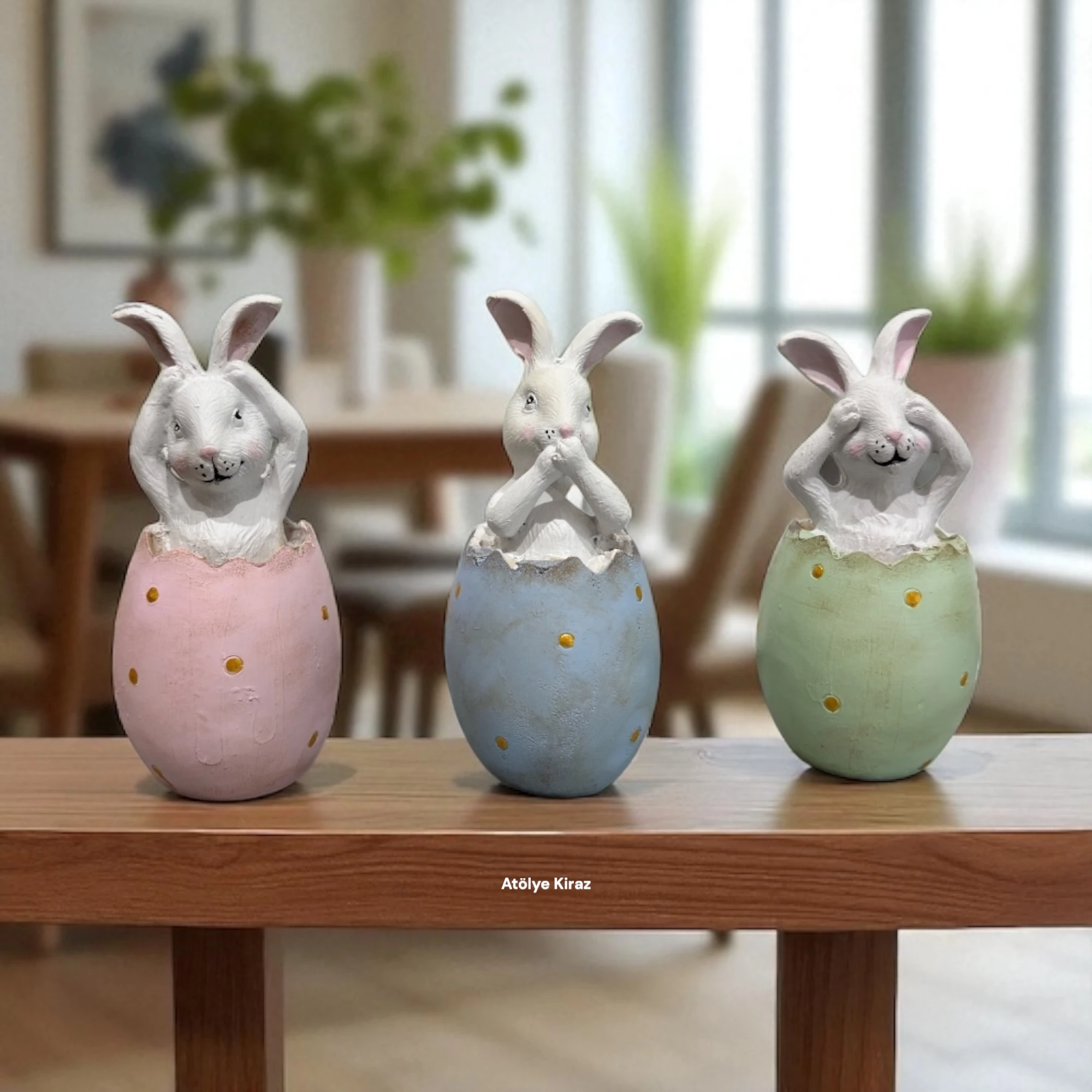Özellikle çocukların bulunduğu alanlarda tavşan figürleri pozitif bir enerji yaratır. Eğlenceli görünümleri, çocuklara soyut kavramları anlatmak için kullanılabilir. Aynı zamanda ev dekorasyonunda sanatsal ve neşeli detaylara yer vermek isteyenler için ideal bir tercihtir. Bu ürün, Atölye Kiraz‘ın benzersiz tasarım anlayışını ve el işçiliğine verdiği önemi yansıtır.