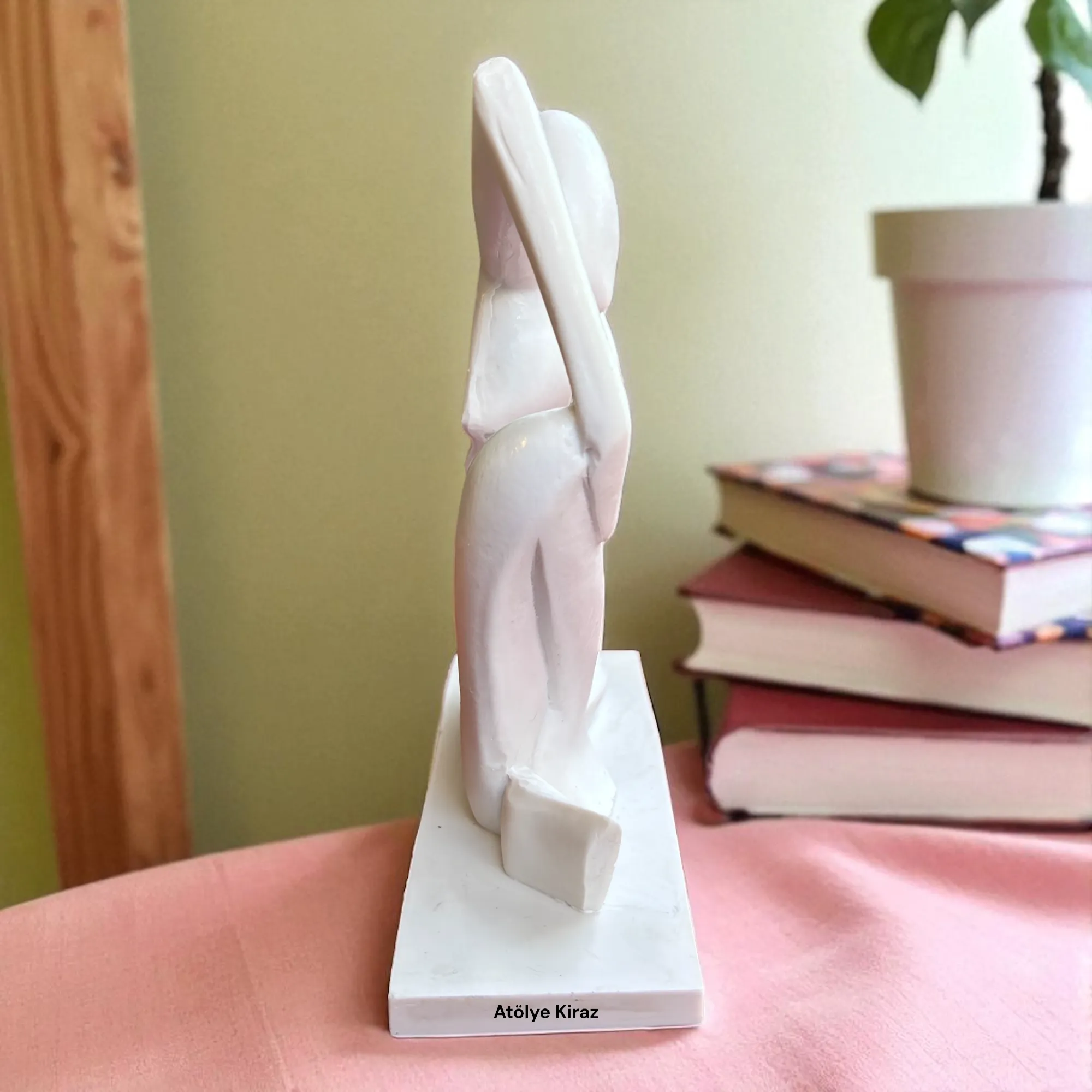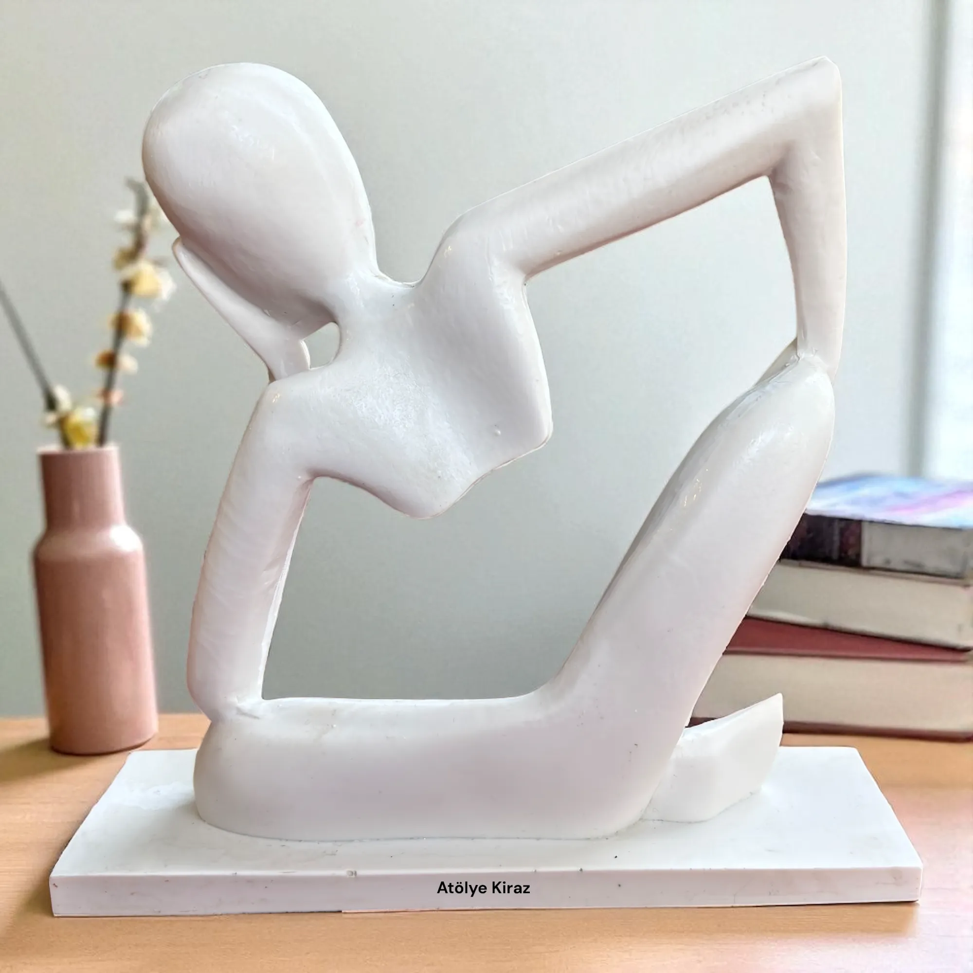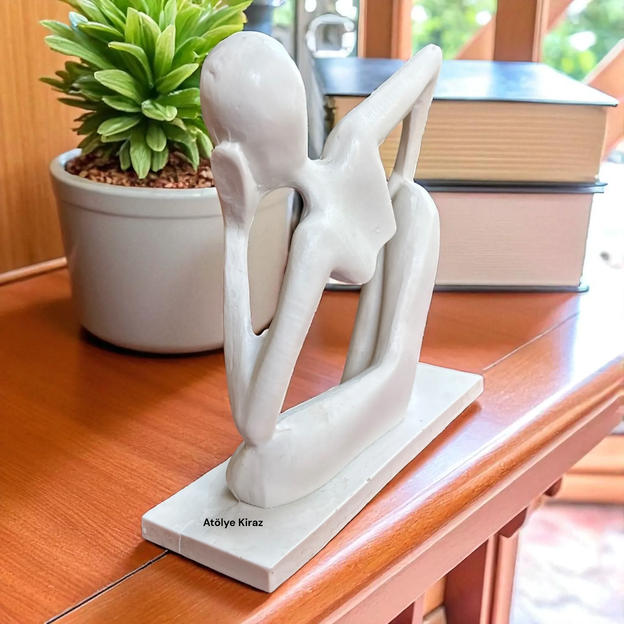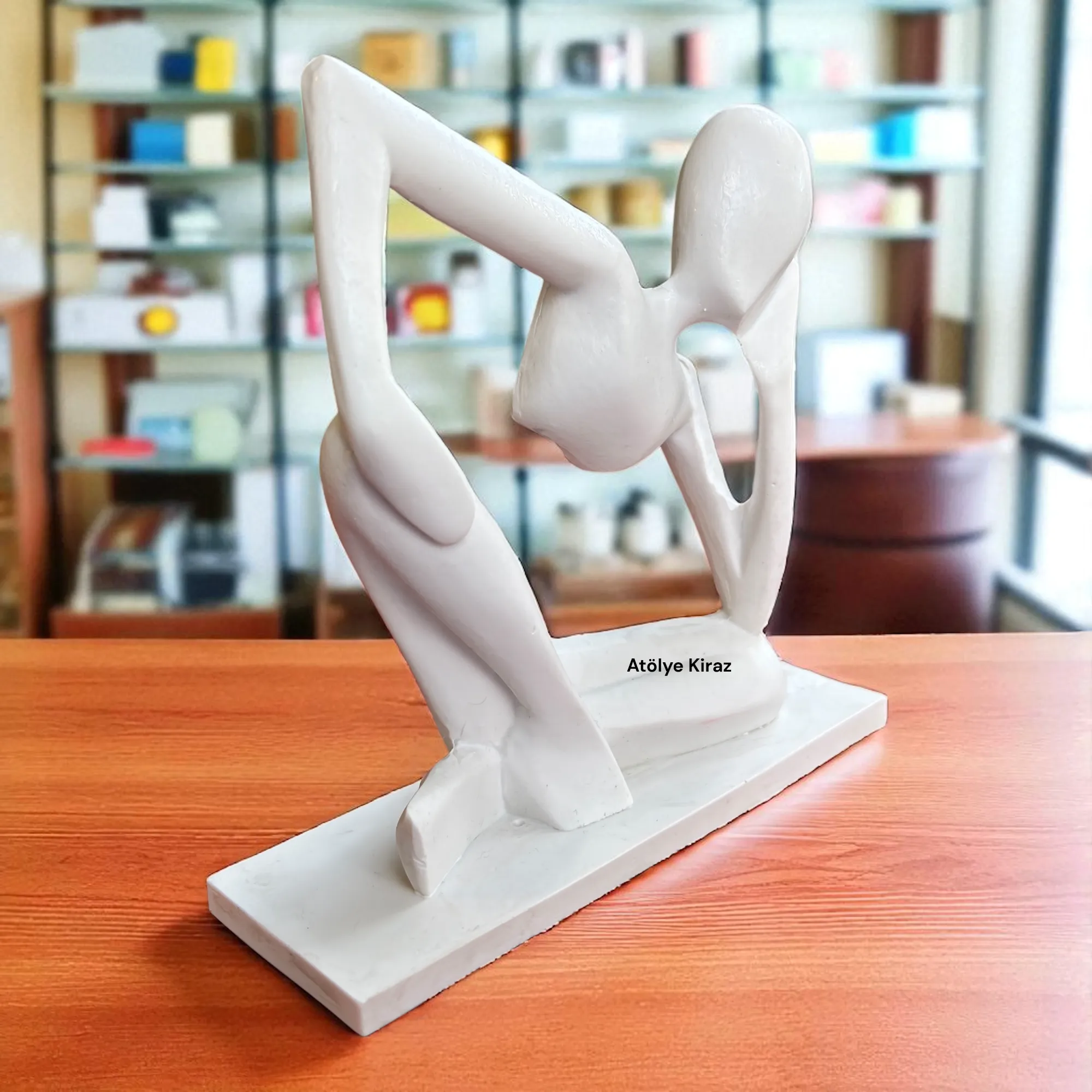 Yüksek kaliteli **polyester** malzemeden üretilen bu **heykel**, sağlam ve pürüzsüz yapısıyla boyama için ideal bir tuvaldir. **6 cm (en) x 20,5 cm (boy) x 20 cm (yükseklik)** ölçüleriyle, ofis masanızın, kitaplığınızın veya sehpanızın üzerinde sergilenmek için mükemmel bir boyuttadır. Heykelin yalın ve modern çizgileri, bulunduğu her ortama entelektüel ve sofistike bir hava katar. Bu **ev dekoru** parçası, **yılbaşı hediyesi** veya **ofis hediyesi** olarak da anlamlıdır.