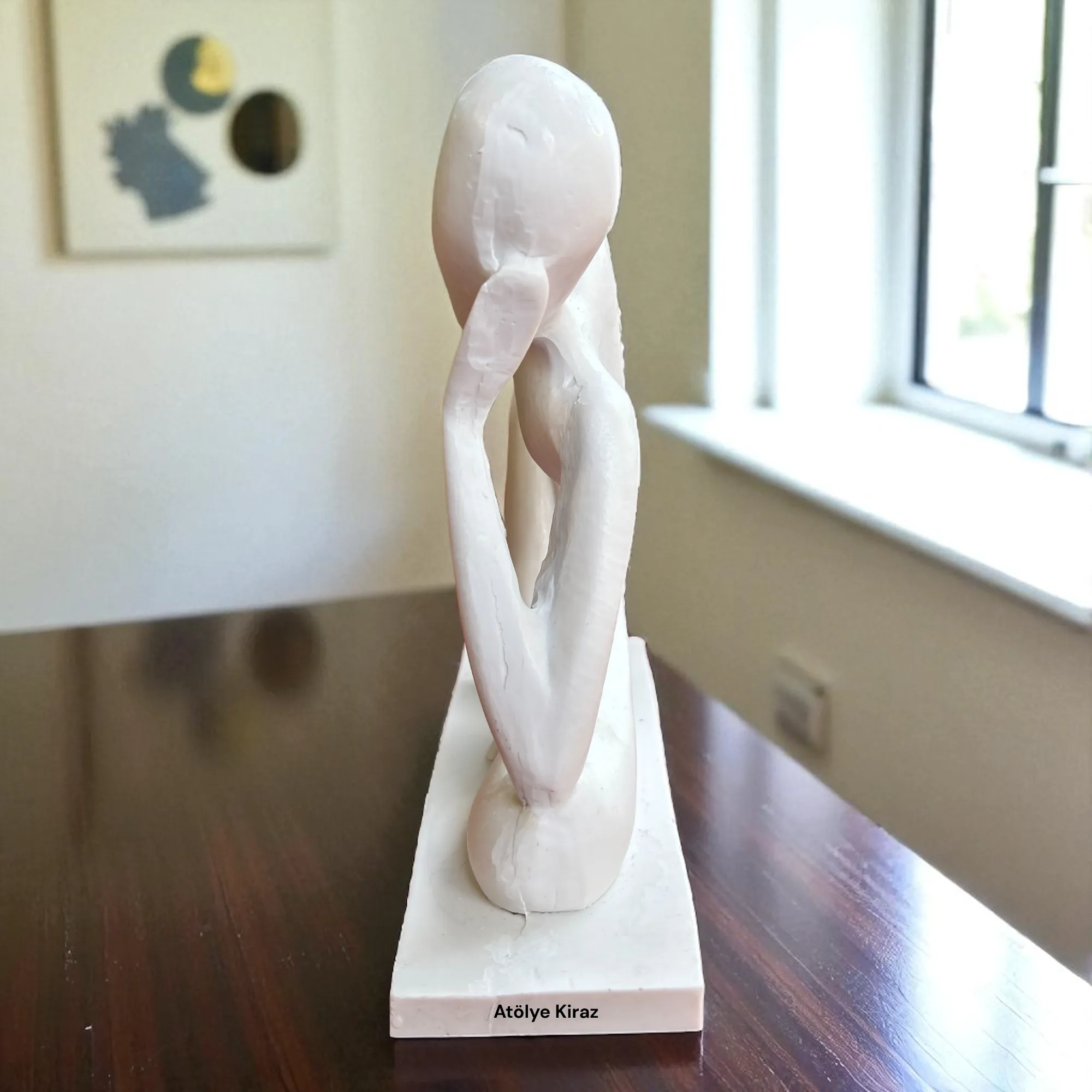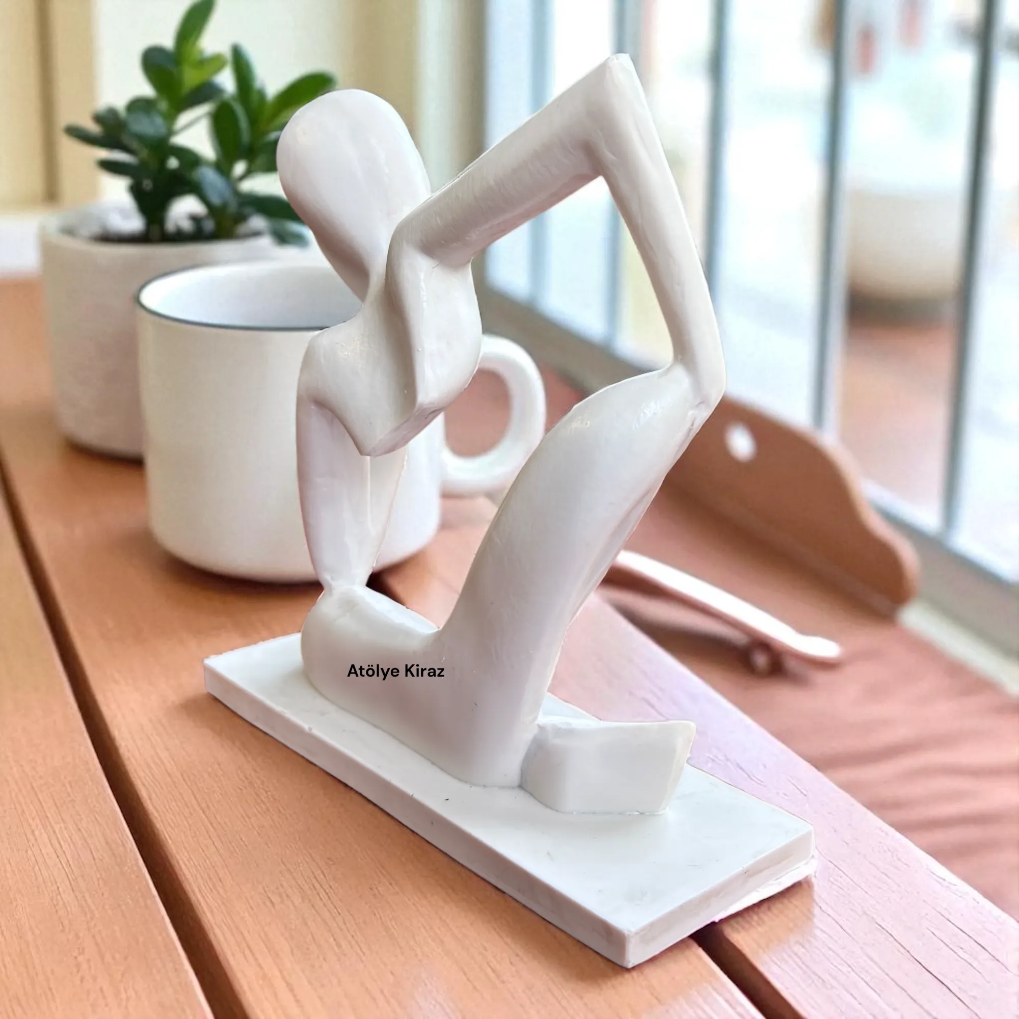 Dekorasyonunuzda Modern Sanatın gücünü, minimalizmin zarafetiyle birleştiren bir **sanat objesi** arıyorsanız, bu figür tam size göre. **Ham Polyester Düşünen Adam Heykeli**, insan formunun soyut ve düşündürücü bir yorumudur. Sanatsal bir duruş sergileyen bu **figür**, elini çenesine dayamış, derin düşüncelere dalmış bir pozu yansıtır. Ürünün ham ve boyanmamış olması, size kendi sanatsal vizyonunuzu uygulama ve bu eşsiz **biblo**yu tamamen kişisel bir şahesere dönüştürme fırsatı sunar.