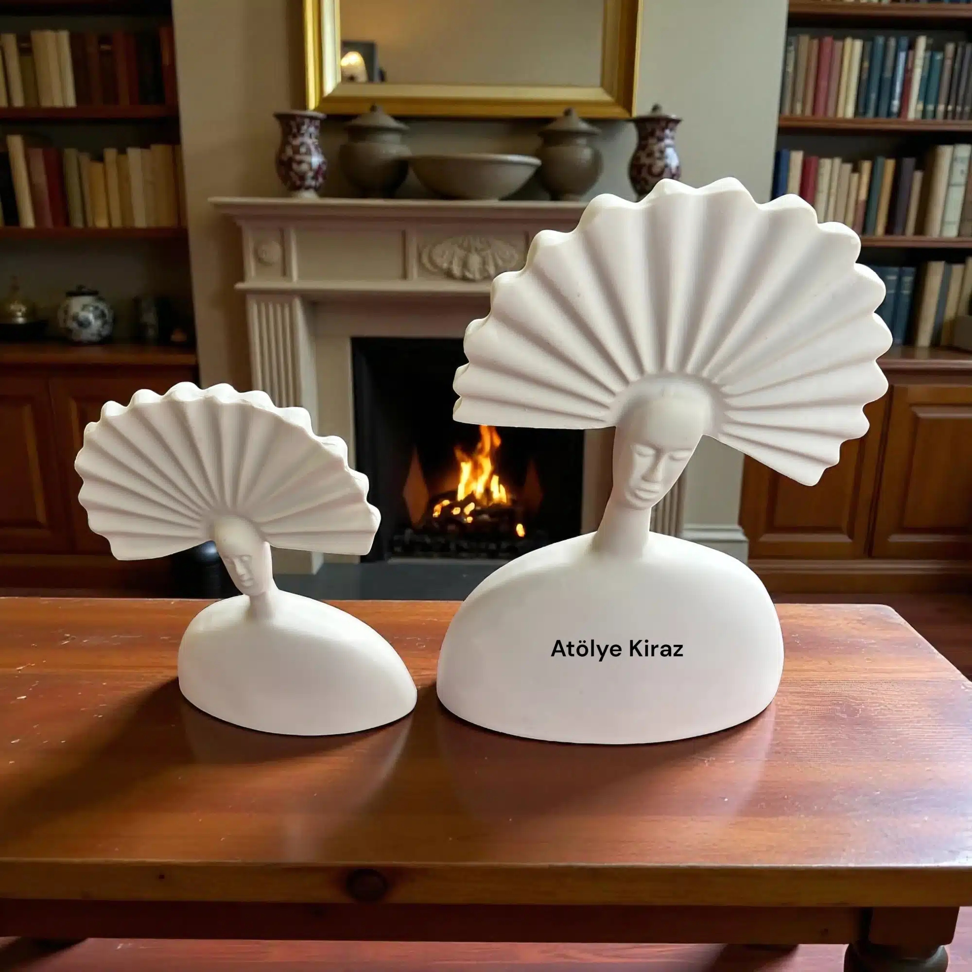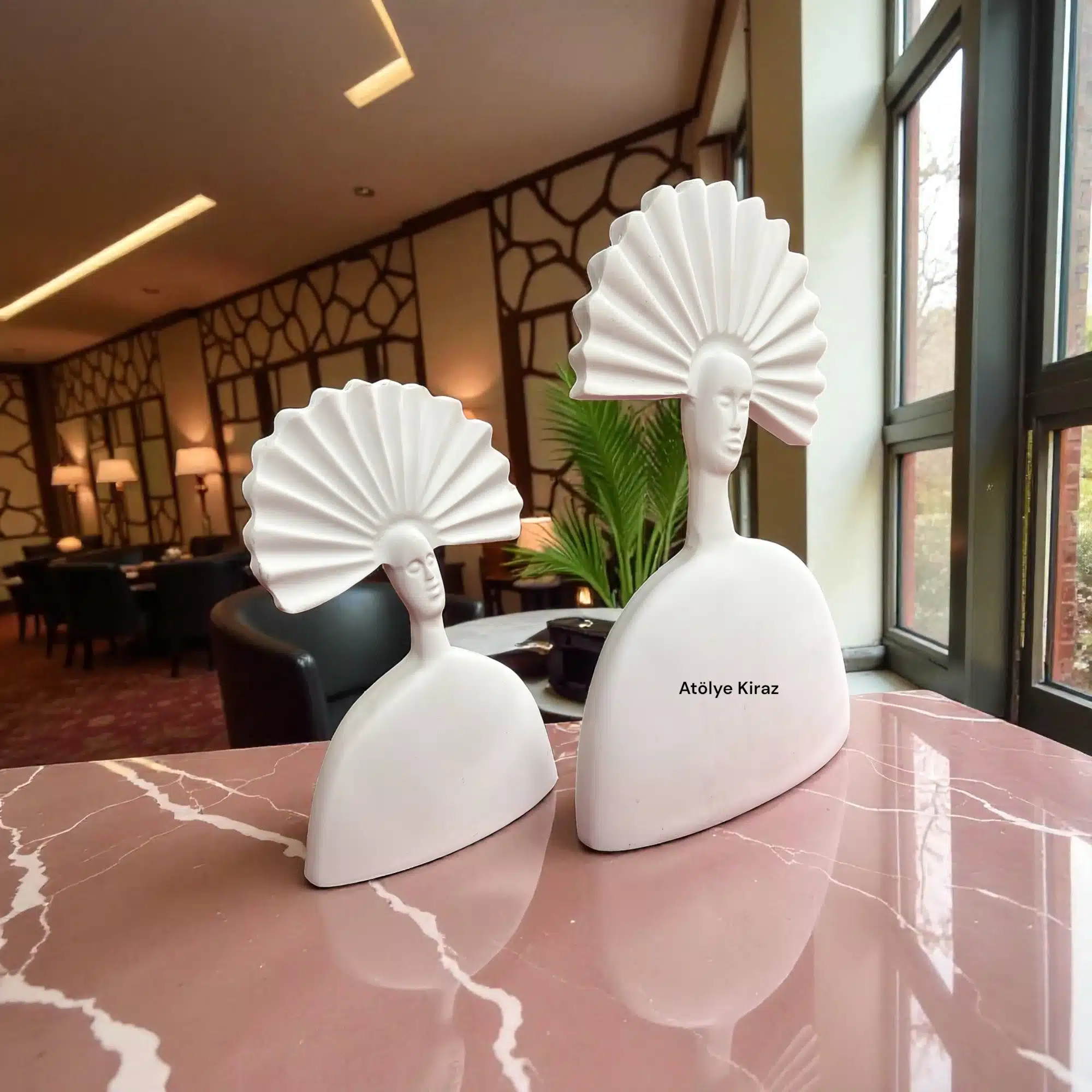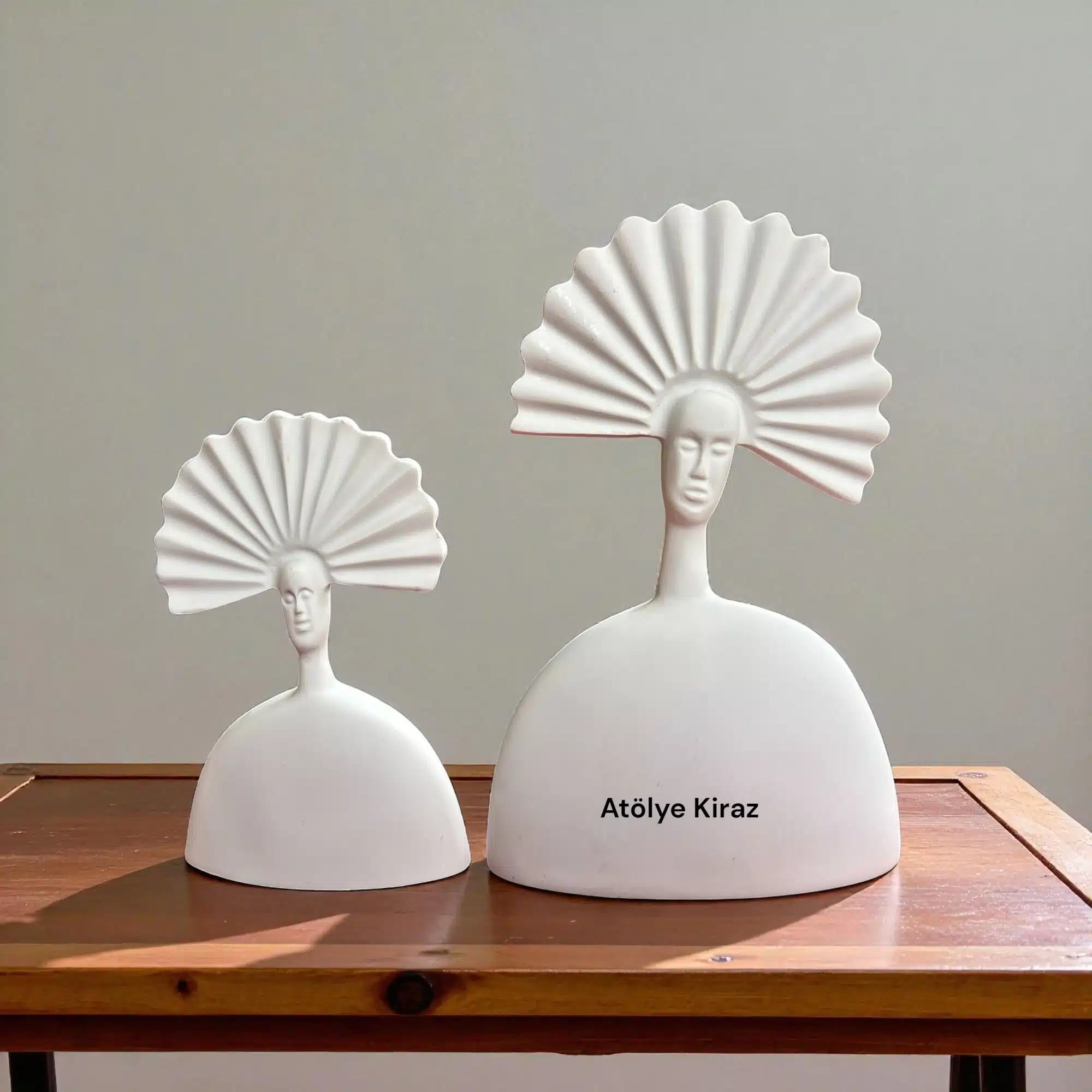 Sanatın Minimalist İfadesi: Ham Polyester Yelpaze Saçlı Kadın Heykeli Seti
