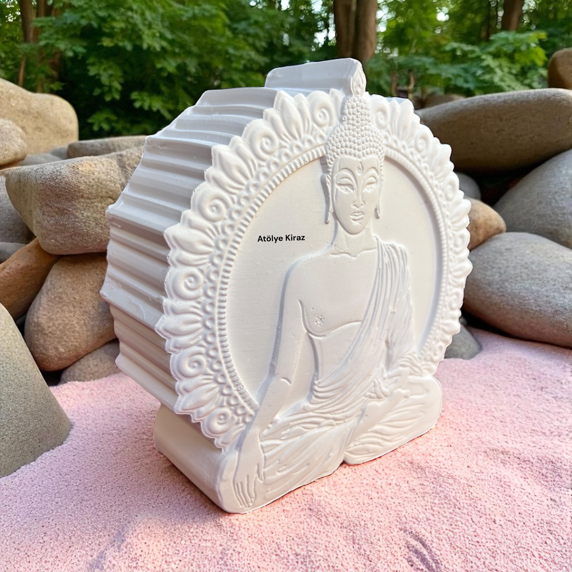 Evinizin dekorasyonuna hem estetik hem de manevi bir dokunuş katmak için tasarlanmış **Ham Taş Tozu Buda Heykeli** ile tanışın. Meditasyon duruşundaki Buda figürü, zarif dairesel çerçevesi ve ince işçiliğiyle, her bakışta huzur ve dinginlik veriyor. Ürünün ham ve boyanmamış olması, size kendi sanatsal dokunuşunuzu ekleme ve onu tamamen size özel bir sanat eserine dönüştürme fırsatı sunar.