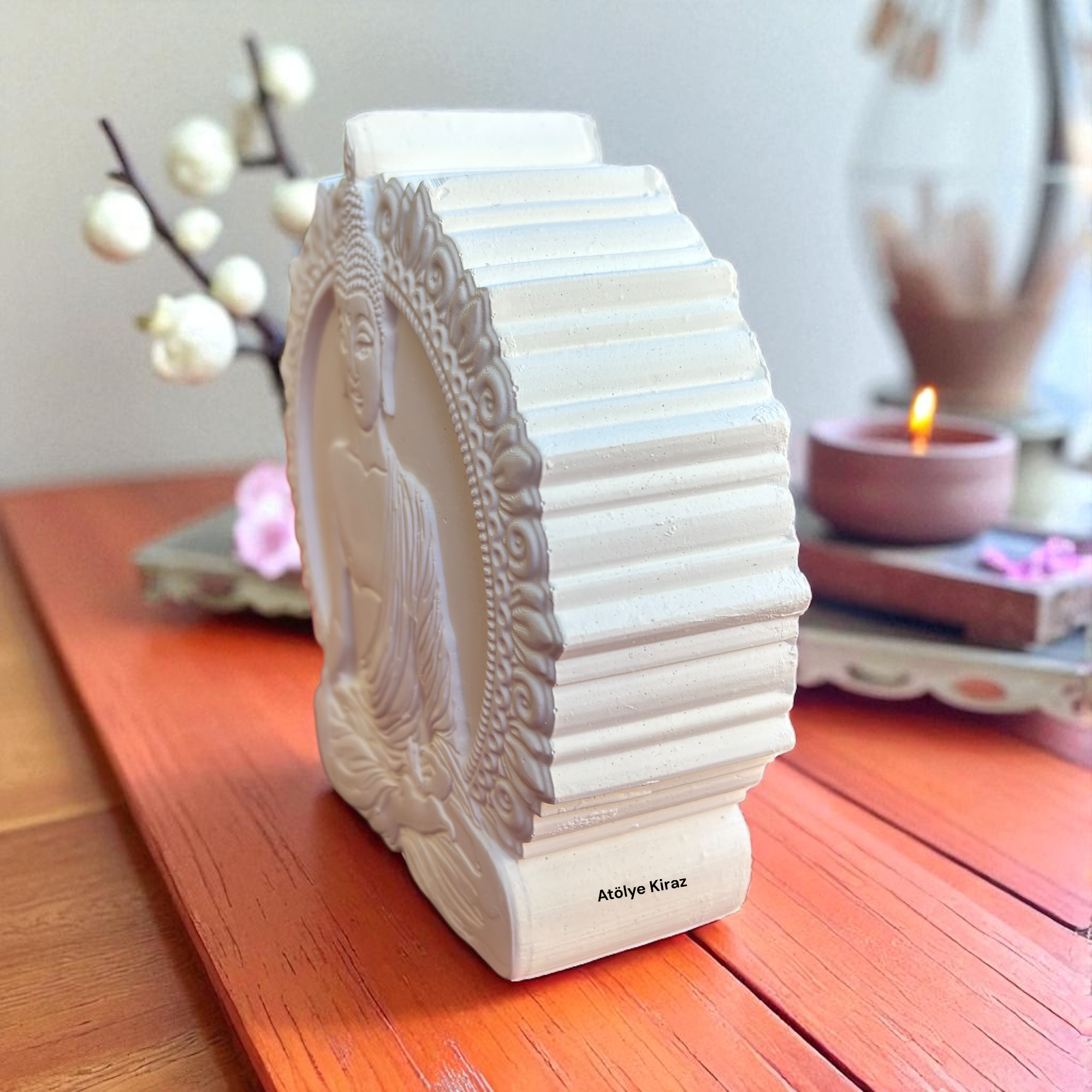 **Boyanabilir Buda figürü** arayanlar için bu ürün, eşsiz tasarımıyla öne çıkar. Ham haliyle minimalist bir şıklık sunarken, boyandığında bambaşka bir kimliğe bürünebilir. Akrilik, sprey, yağlı boya veya varak gibi farklı tekniklerle boyayarak, onu kişisel bir hikaye anlatan bir objeye dönüştürebilirsiniz.