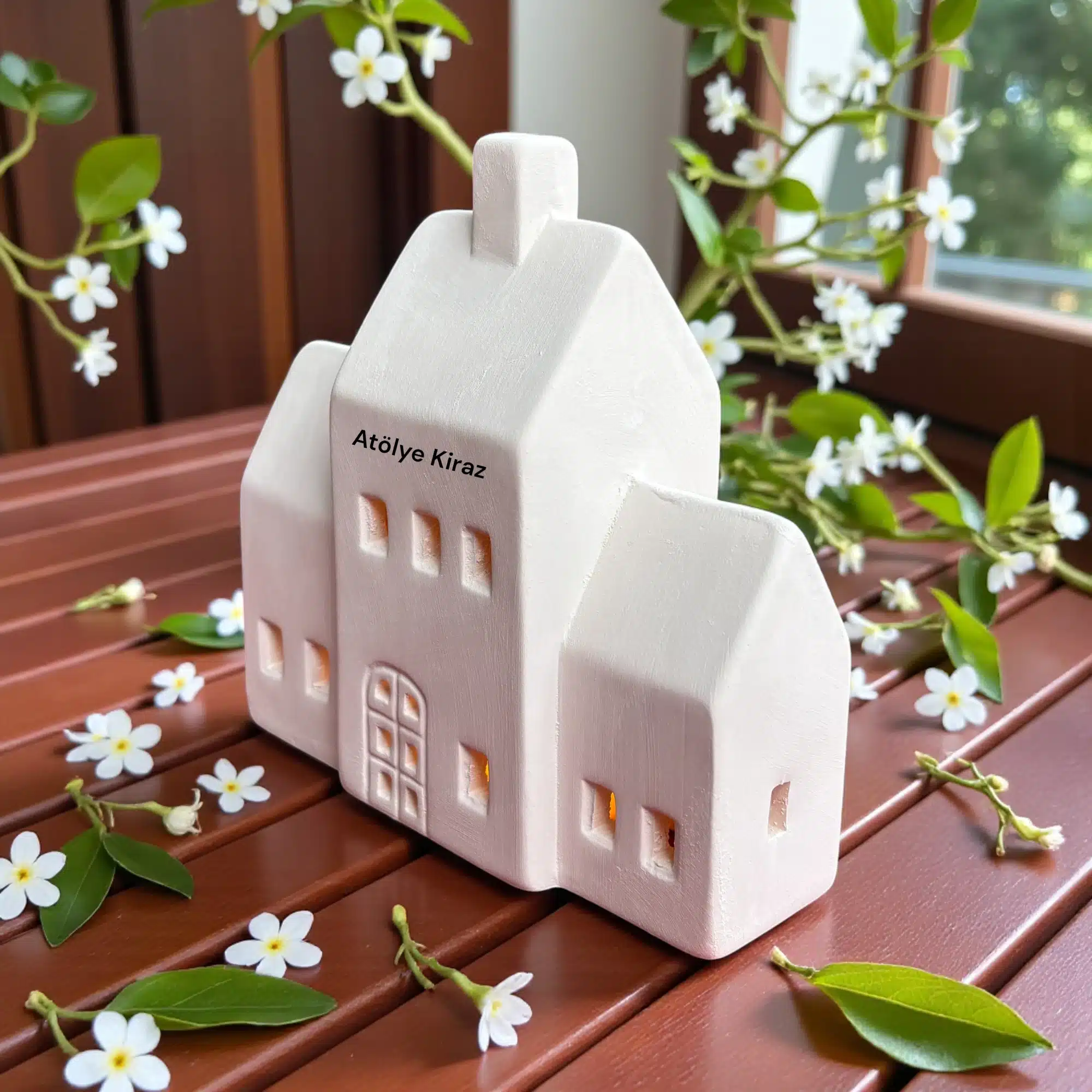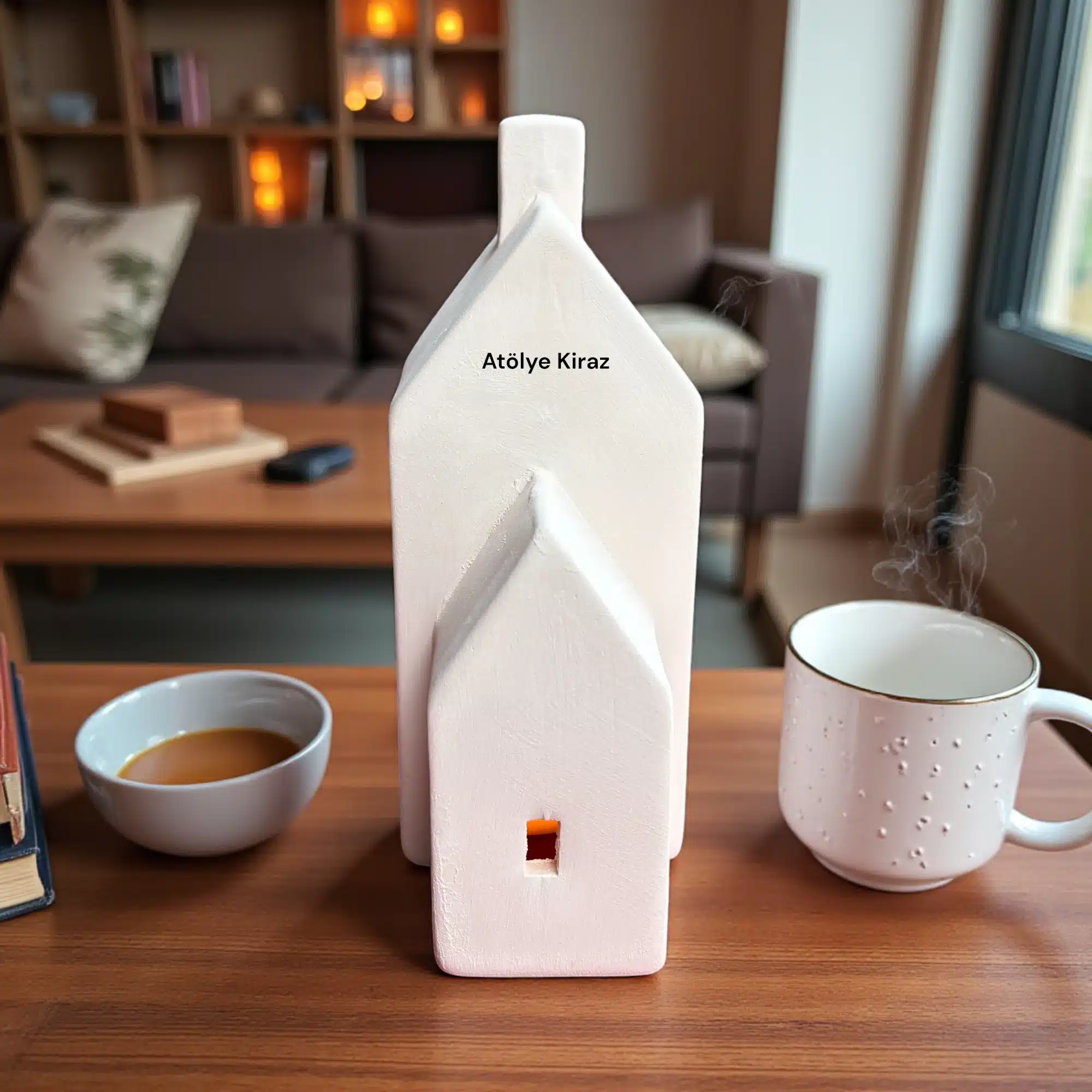 İskandinav Tarzı Seramik Ev Mumluk: Işıklı ve Dekoratif Obje