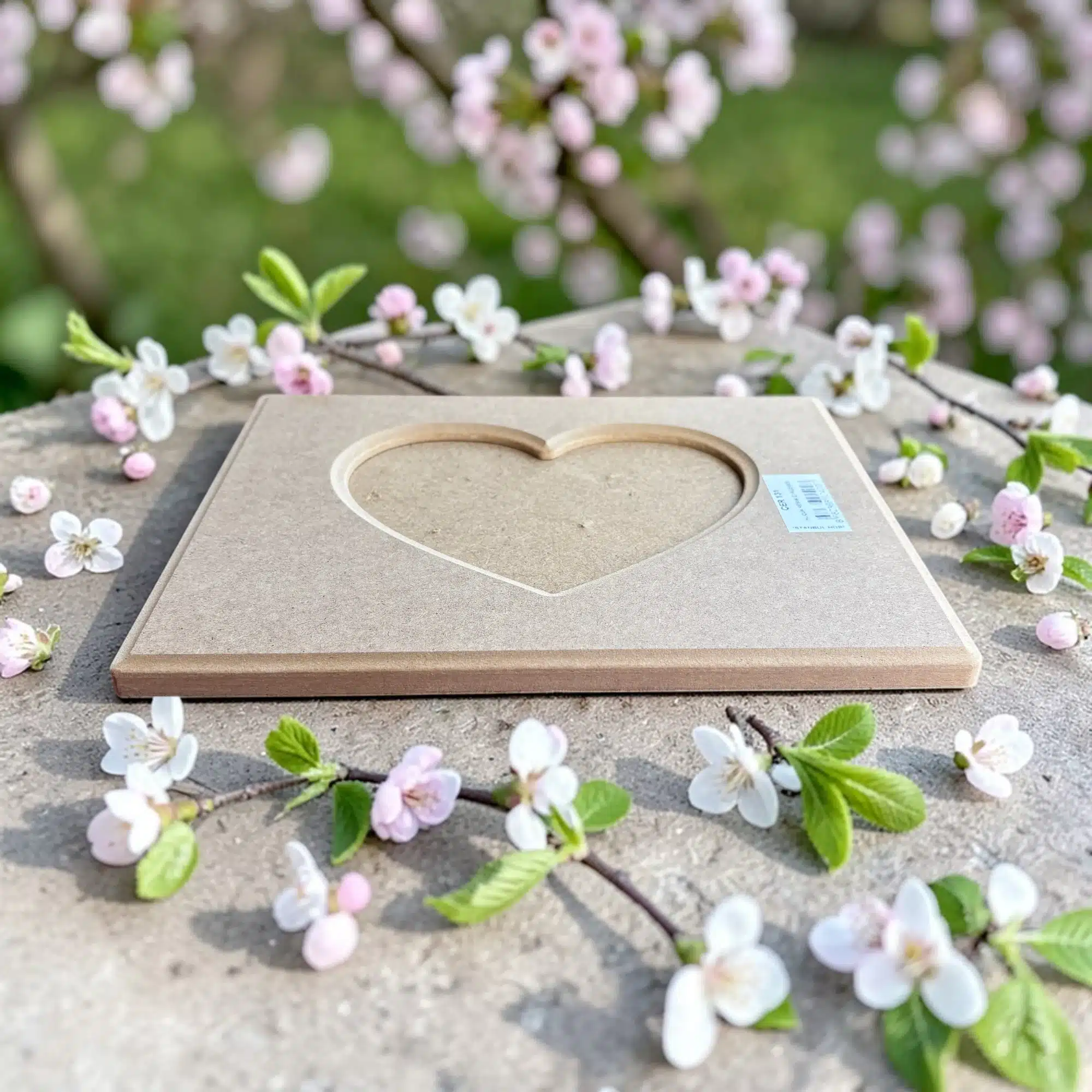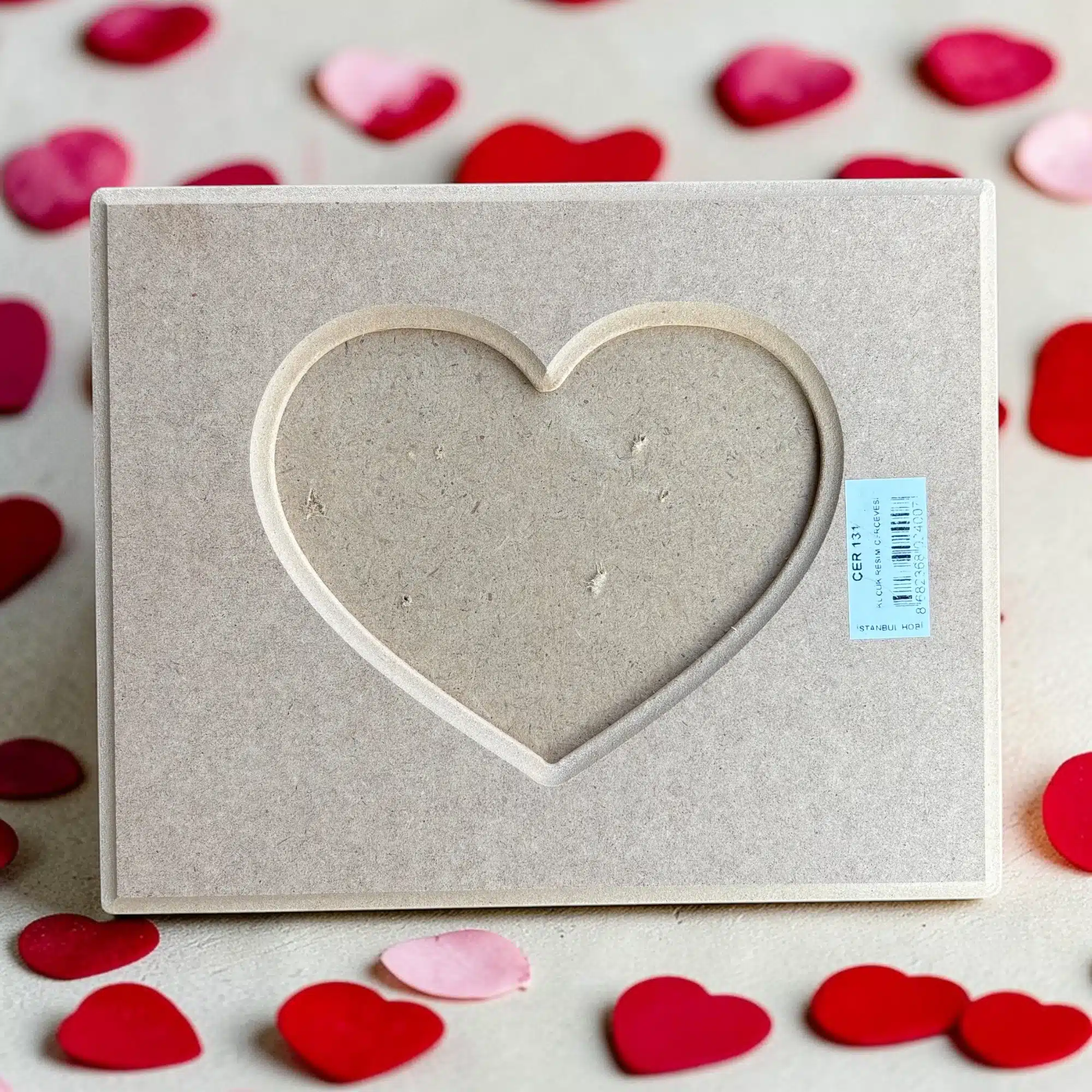 - Tasarım: Dikdörtgen dış form, kalp şeklinde iç pencere