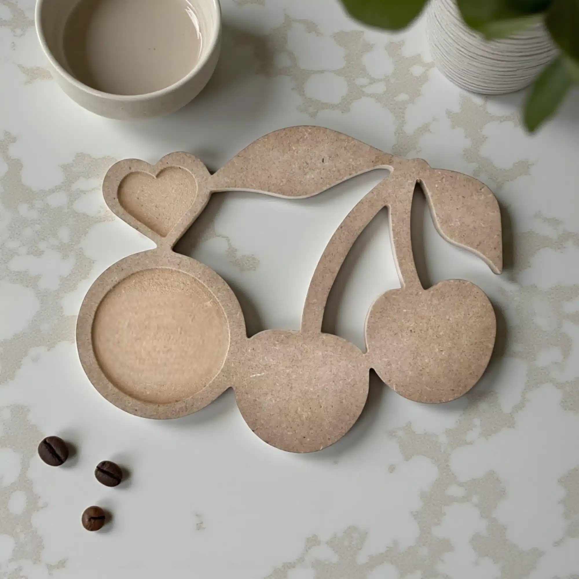 Yaz Detayları: Kiraz formunda dekoratif ve işlevsel ahşap bardak altlığı.