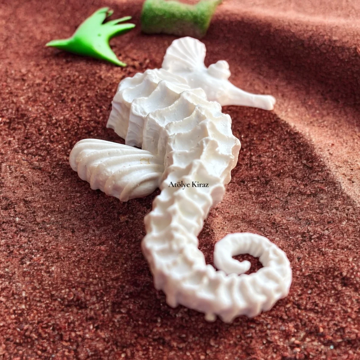 Yüksek kaliteli polyesterden üretilen bu küçük süs figürü, hafif ve dayanıklı yapısıyla öne çıkar. Detaylı kalıp işçiliği sayesinde denizatı pulları, yüzgeçleri ve kendine özgü kıvrımlı formu gerçekçi bir şekilde yansıtılmıştır. Ürün, ham beyaz renkte sunulmaktadır. Bu özelliği sayesinde, yaratıcılığınızı konuşturabilir ve akrilik, sprey veya diğer hobi boyalarıyla istediğiniz renklere boyayabilirsiniz. Canlı mavi, turkuaz tonları veya altın yaldızlarla boyayarak figürünüze kişisel bir dokunuş katabilir, kendi sanatsal vizyonunuzu yansıtabilirsiniz. Boyama sonrası vernikleme işlemi, renklerin kalıcılığını ve figürün parlaklığını artıracaktır.