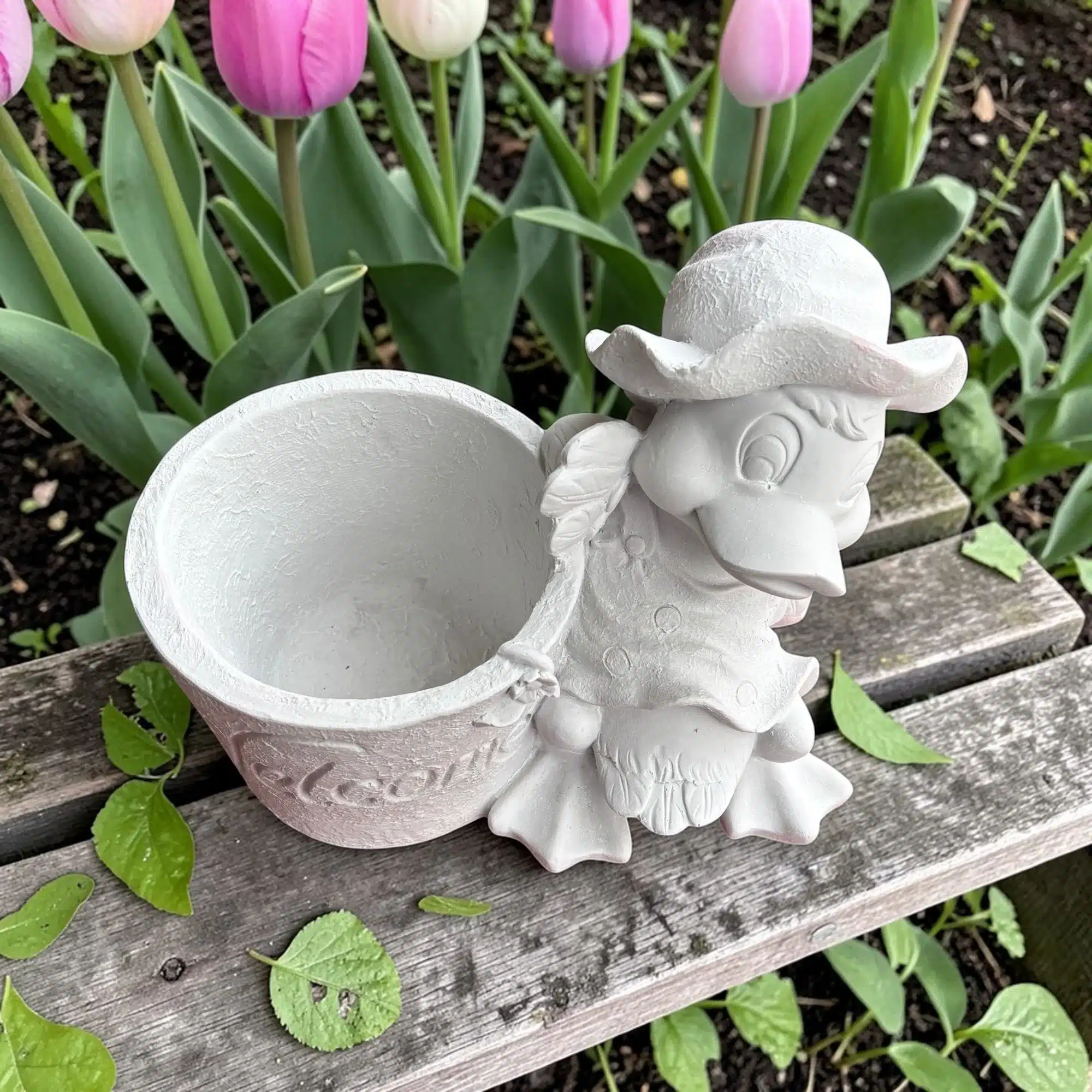 Her bir figürü 22x23x15 cm ölçülerindeki ideal, dengeli ve gösterişli boyutlarıyla öne çıkan bu ördek figürlü saksı seti, yaratıcılığınız için inanılmaz geniş bir alan sunar. Ördeklerin şapkalarını, sevimli gagalarını ve fırfırlı kıyafet detaylarını dilediğiniz bahar renklerine boyayabilir, “Welcome” yazısını kontrast bir renkle ön plana çıkarabilirsiniz. Sadece bitkileriniz için değil, hayal gücünüz için de bir yuva olan bu ördek figürlü saksı seti modelini, dış mekan koşullarına uygun bir vernikle sonlandırarak bahçenizin en dayanıklı ve en dikkat çekici dekoratif üyesi haline getirebilirsiniz.