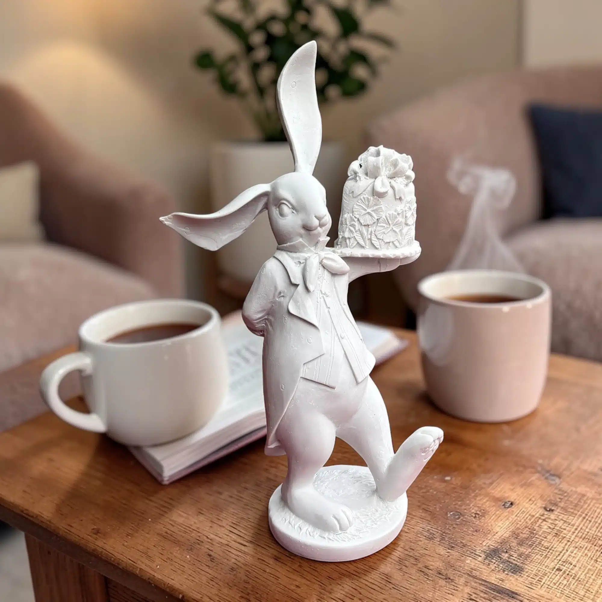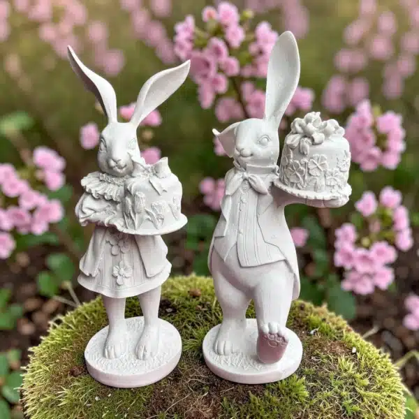 Bu estetik, eğlenceli ve çok yönlü pasta tutan tavşan çifti, hayal gücünüzün sınırlarını zorlayacak kadar geniş bir kullanım alanına sahiptir. Doğum günü parti masalarınızı, şömine üzerini, vitrinlerinizi veya mutfak tezgahınızı süslemek için bu ürünü muazzam bir merkez objesi olarak gönül rahatlığıyla kullanabilirsiniz. Aynı zamanda Paskalya konseptlerinde, çay saati davetlerinde veya çocuk odası dekorasyonlarında sergilediğiniz bir pasta tutan tavşan çifti, o alana anında dinamik, nostaljik ve kutlama dolu bir karakter kazandıracaktır. Özellikle şık sunum masalarının tam ortasına yerleştireceğiniz bu figürler, misafirlerinizin hayranlıkla inceleyeceği bir detay olacaktır.