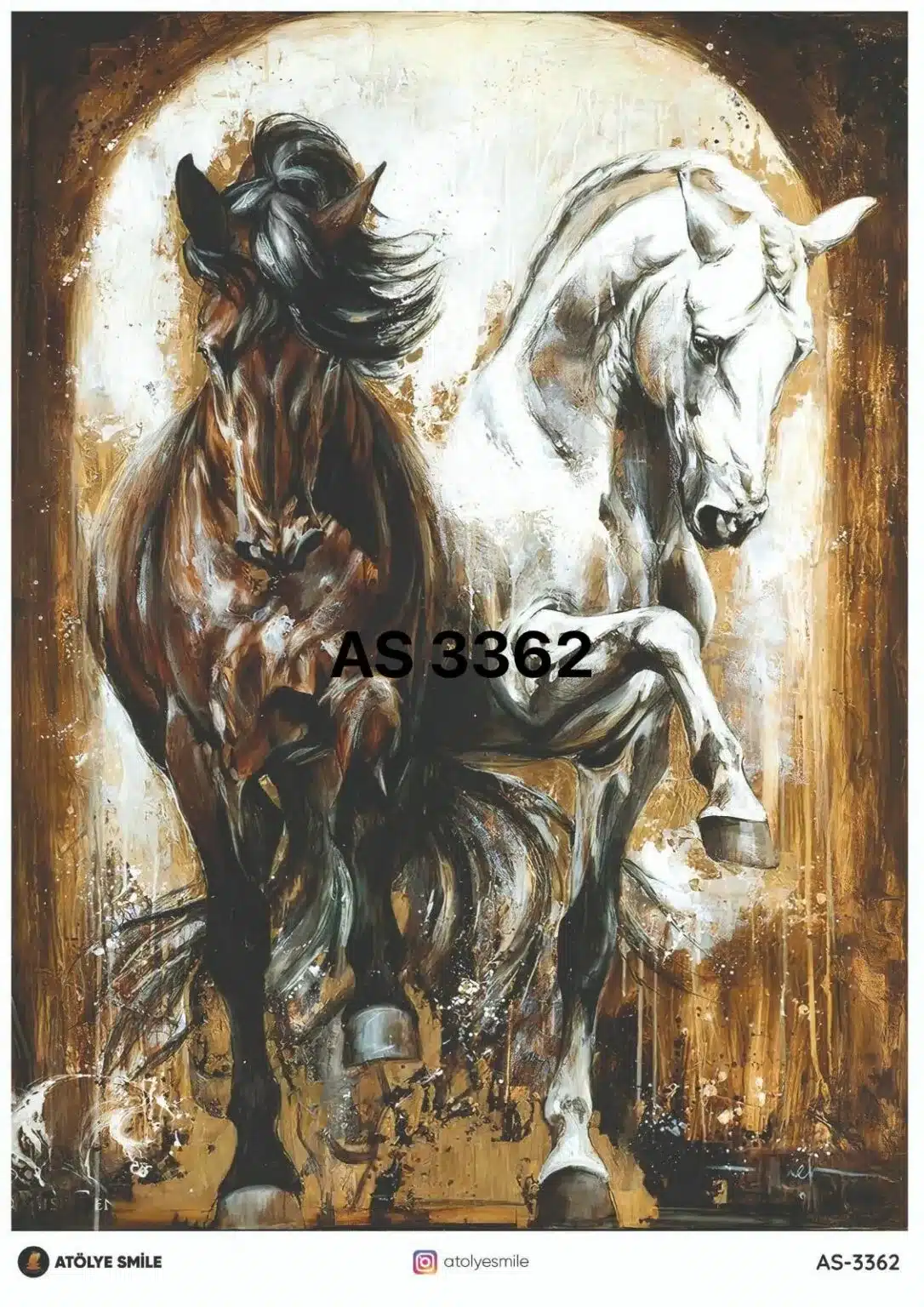 PD3362-AS-Pirinç Dekopaj Kağıdı-29×42 cm | Siyah ve Beyaz Atlar Temalı