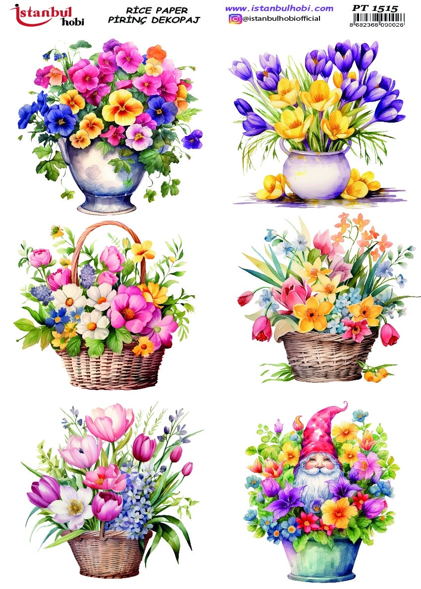 Pirinç Dekopaj Kağıdı, el sanatları tutkunları ve DIY (Kendin Yap) projeleri için mükemmel bir tercihtir. Yüksek kaliteli ve dayanıklı bu özel kağıt, yüzeylere kolayca yapışarak size mükemmel sonuçlar sunar. Ahşap, cam, seramik, metal ve kumaş gibi birçok yüzeyde kullanabileceğiniz Pirinç Dekopaj Kağıdı ile özgün ve zarif tasarımlar yaratabilirsiniz. Pirinç Dekopaj Kağıdı, çeltik sapından yapılan ince kâğıt üzerine basılı olup, pirinç dekopaj çalışmaları için kullanılmaktadır. Dekopaj tutkalı ile istediğiniz alana kolayca yapıştırıp üzerine boyama, rölyef, varak ve vernik uygulayabilirsiniz. Özellikler: