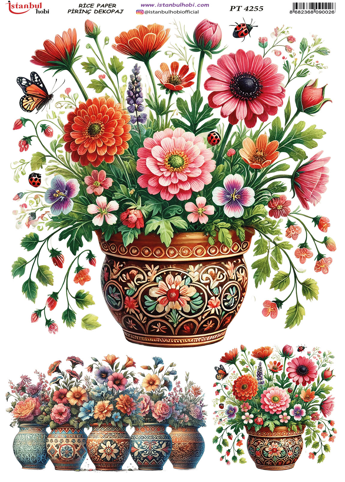 Pirinç Dekopaj Kağıdı, el sanatları tutkunları ve DIY (Kendin Yap) projeleri için mükemmel bir tercihtir. Yüksek kaliteli ve dayanıklı bu özel kağıt, yüzeylere kolayca yapışarak size mükemmel sonuçlar sunar. Ahşap, cam, seramik, metal ve kumaş gibi birçok yüzeyde kullanabileceğiniz Pirinç Dekopaj Kağıdı ile özgün ve zarif tasarımlar yaratabilirsiniz. Pirinç Dekopaj Kağıdı, çeltik sapından yapılan ince kâğıt üzerine basılı olup, pirinç dekopaj çalışmaları için kullanılmaktadır. Dekopaj tutkalı ile istediğiniz alana kolayca yapıştırıp üzerine boyama, rölyef, varak ve vernik uygulayabilirsiniz. Özellikler: