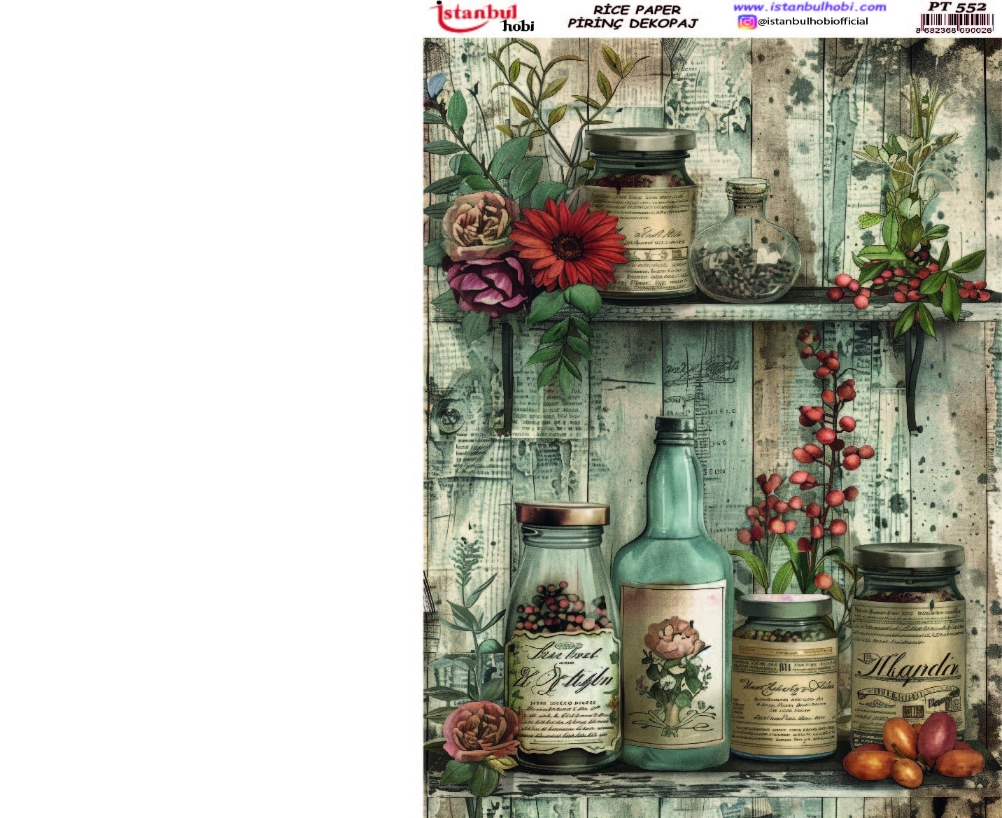 Pirinç Dekopaj Kağıdı, el sanatları tutkunları ve DIY (Kendin Yap) projeleri için mükemmel bir tercihtir. Yüksek kaliteli ve dayanıklı bu özel kağıt, yüzeylere kolayca yapışarak size mükemmel sonuçlar sunar. Ahşap, cam, seramik, metal ve kumaş gibi birçok yüzeyde kullanabileceğiniz Pirinç Dekopaj Kağıdı ile özgün ve zarif tasarımlar yaratabilirsiniz. Pirinç Dekopaj Kağıdı, çeltik sapından yapılan ince kâğıt üzerine basılı olup, pirinç dekopaj çalışmaları için kullanılmaktadır. Dekopaj tutkalı ile istediğiniz alana kolayca yapıştırıp üzerine boyama, rölyef, varak ve vernik uygulayabilirsiniz. Özellikler:
