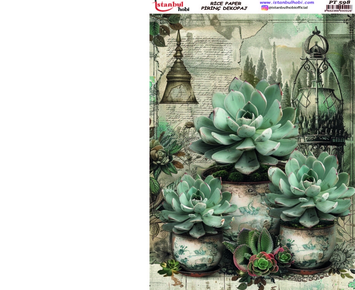 Pirinç Dekopaj Kağıdı, el sanatları tutkunları ve DIY (Kendin Yap) projeleri için mükemmel bir tercihtir. Yüksek kaliteli ve dayanıklı bu özel kağıt, yüzeylere kolayca yapışarak size mükemmel sonuçlar sunar. Ahşap, cam, seramik, metal ve kumaş gibi birçok yüzeyde kullanabileceğiniz Pirinç Dekopaj Kağıdı ile özgün ve zarif tasarımlar yaratabilirsiniz. Pirinç Dekopaj Kağıdı, çeltik sapından yapılan ince kâğıt üzerine basılı olup, pirinç dekopaj çalışmaları için kullanılmaktadır. Dekopaj tutkalı ile istediğiniz alana kolayca yapıştırıp üzerine boyama, rölyef, varak ve vernik uygulayabilirsiniz. Özellikler:
