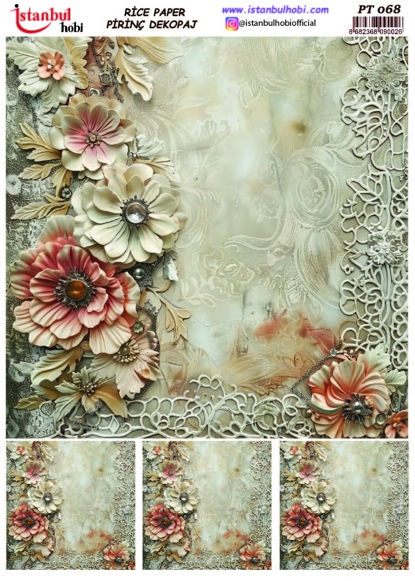 Pirinç Dekopaj Kağıdı, el sanatları tutkunları ve DIY (Kendin Yap) projeleri için mükemmel bir tercihtir. Yüksek kaliteli ve dayanıklı bu özel kağıt, yüzeylere kolayca yapışarak size mükemmel sonuçlar sunar. Ahşap, cam, seramik, metal ve kumaş gibi birçok yüzeyde kullanabileceğiniz Pirinç Dekopaj Kağıdı ile özgün ve zarif tasarımlar yaratabilirsiniz. Pirinç Dekopaj Kağıdı, çeltik sapından yapılan ince kâğıt üzerine basılı olup, pirinç dekopaj çalışmaları için kullanılmaktadır. Dekopaj tutkalı ile istediğiniz alana kolayca yapıştırıp üzerine boyama, rölyef, varak ve vernik uygulayabilirsiniz. Özellikler:
