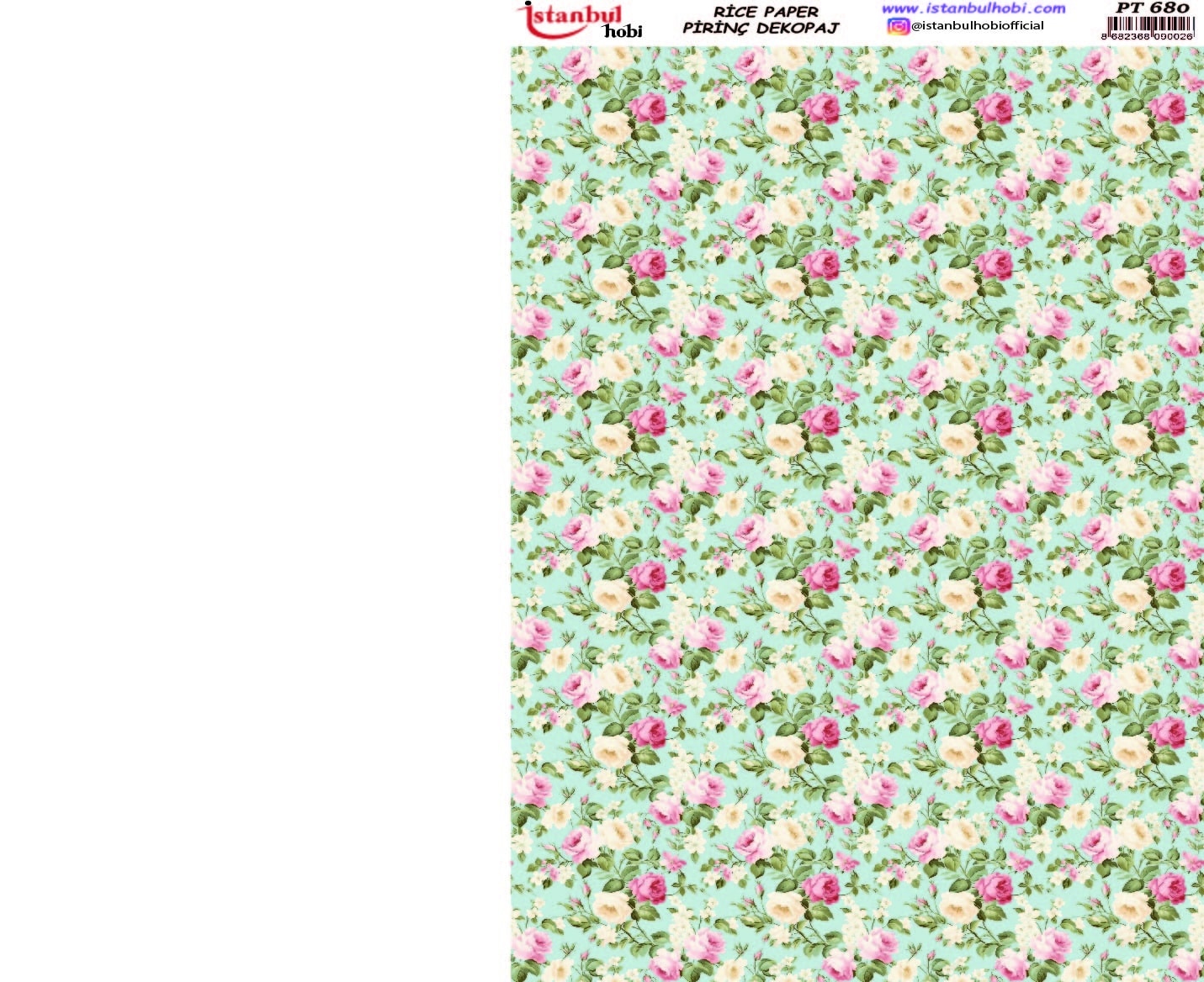 Pirinç Dekopaj Kağıdı, el sanatları tutkunları ve DIY (Kendin Yap) projeleri için mükemmel bir tercihtir. Yüksek kaliteli ve dayanıklı bu özel kağıt, yüzeylere kolayca yapışarak size mükemmel sonuçlar sunar. Ahşap, cam, seramik, metal ve kumaş gibi birçok yüzeyde kullanabileceğiniz Pirinç Dekopaj Kağıdı ile özgün ve zarif tasarımlar yaratabilirsiniz. Pirinç Dekopaj Kağıdı, çeltik sapından yapılan ince kâğıt üzerine basılı olup, pirinç dekopaj çalışmaları için kullanılmaktadır. Dekopaj tutkalı ile istediğiniz alana kolayca yapıştırıp üzerine boyama, rölyef, varak ve vernik uygulayabilirsiniz. Özellikler: