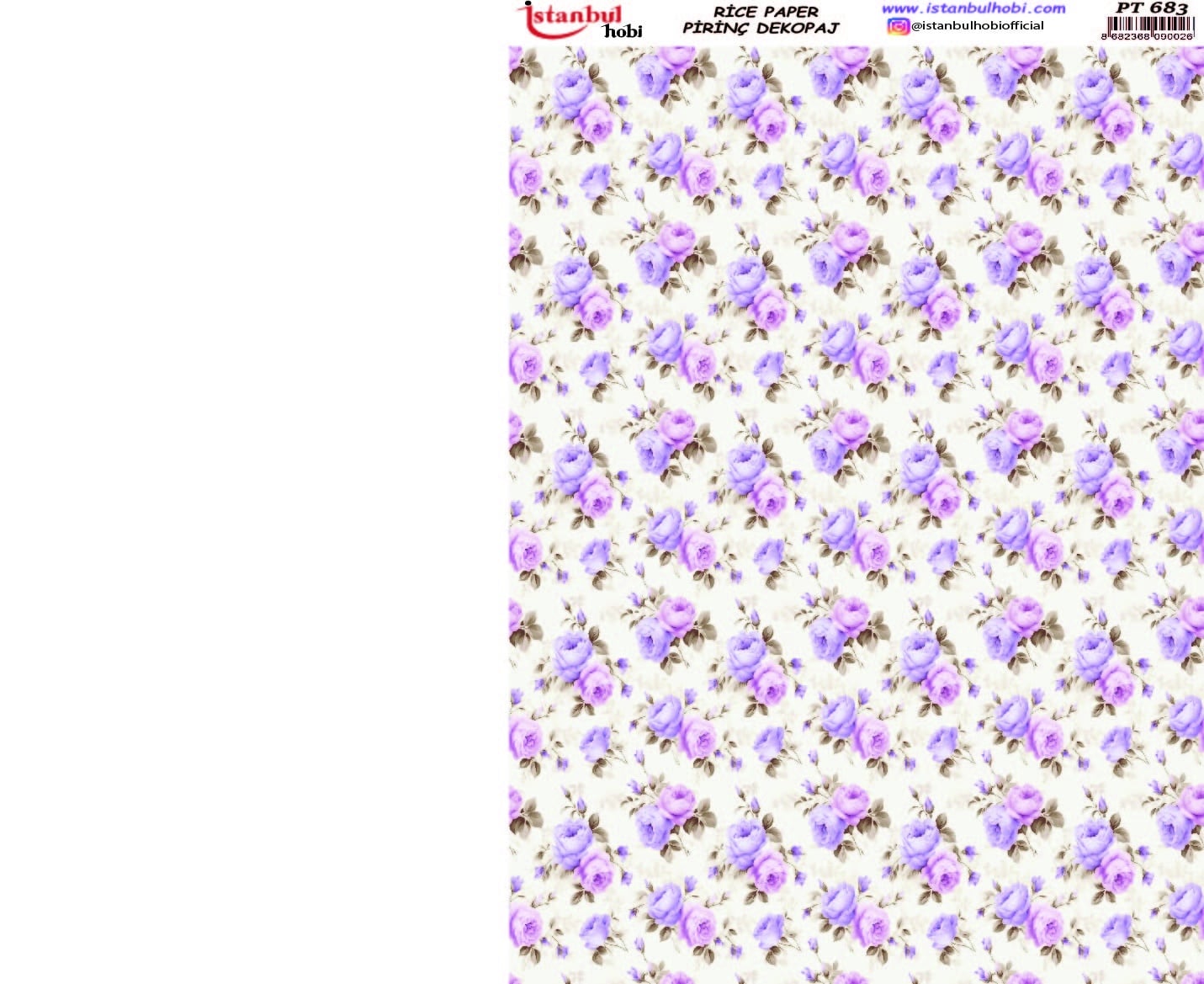 Pirinç Dekopaj Kağıdı, el sanatları tutkunları ve DIY (Kendin Yap) projeleri için mükemmel bir tercihtir. Yüksek kaliteli ve dayanıklı bu özel kağıt, yüzeylere kolayca yapışarak size mükemmel sonuçlar sunar. Ahşap, cam, seramik, metal ve kumaş gibi birçok yüzeyde kullanabileceğiniz Pirinç Dekopaj Kağıdı ile özgün ve zarif tasarımlar yaratabilirsiniz. Pirinç Dekopaj Kağıdı, çeltik sapından yapılan ince kâğıt üzerine basılı olup, pirinç dekopaj çalışmaları için kullanılmaktadır. Dekopaj tutkalı ile istediğiniz alana kolayca yapıştırıp üzerine boyama, rölyef, varak ve vernik uygulayabilirsiniz. Özellikler: