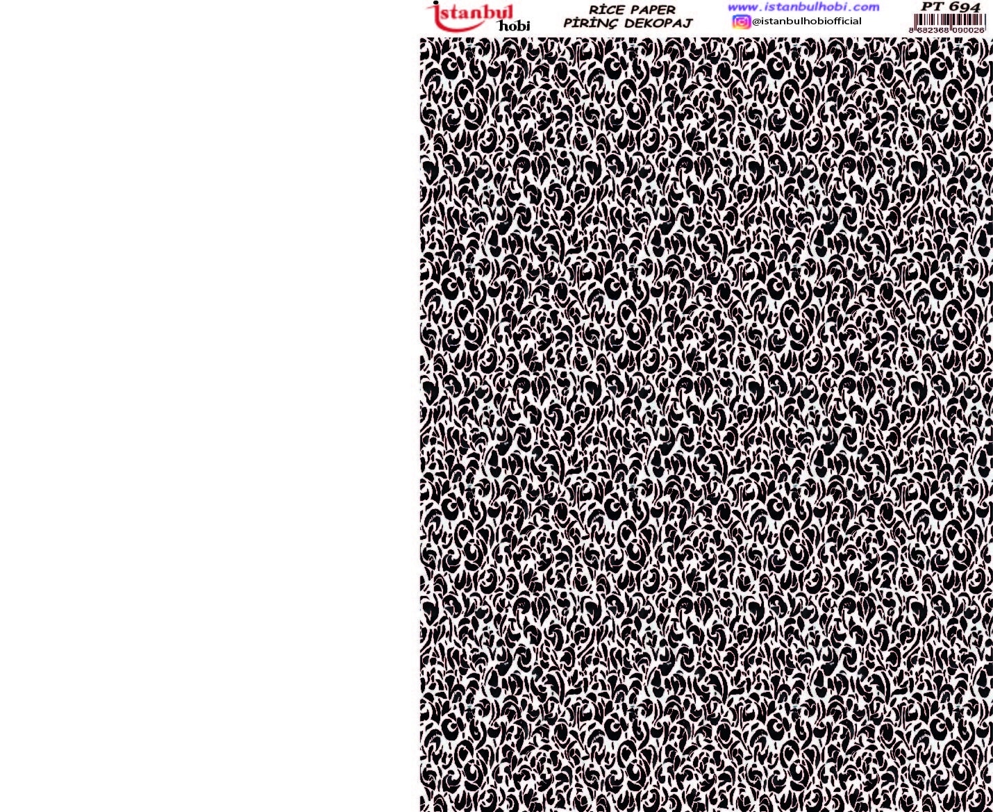 Pirinç Dekopaj Kağıdı, el sanatları tutkunları ve DIY (Kendin Yap) projeleri için mükemmel bir tercihtir. Yüksek kaliteli ve dayanıklı bu özel kağıt, yüzeylere kolayca yapışarak size mükemmel sonuçlar sunar. Ahşap, cam, seramik, metal ve kumaş gibi birçok yüzeyde kullanabileceğiniz Pirinç Dekopaj Kağıdı ile özgün ve zarif tasarımlar yaratabilirsiniz. Pirinç Dekopaj Kağıdı, çeltik sapından yapılan ince kâğıt üzerine basılı olup, pirinç dekopaj çalışmaları için kullanılmaktadır. Dekopaj tutkalı ile istediğiniz alana kolayca yapıştırıp üzerine boyama, rölyef, varak ve vernik uygulayabilirsiniz. Özellikler: