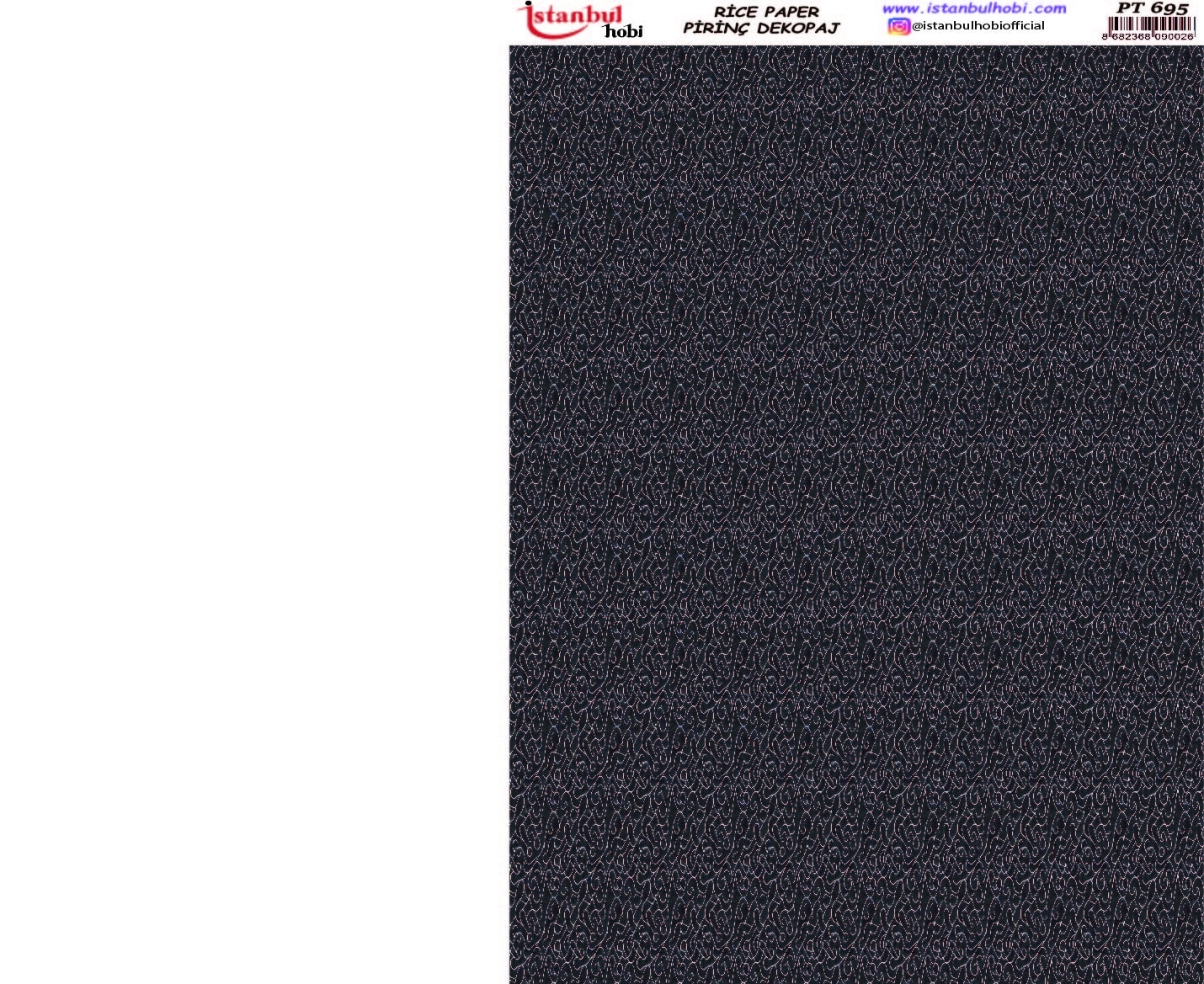Pirinç Dekopaj Kağıdı, el sanatları tutkunları ve DIY (Kendin Yap) projeleri için mükemmel bir tercihtir. Yüksek kaliteli ve dayanıklı bu özel kağıt, yüzeylere kolayca yapışarak size mükemmel sonuçlar sunar. Ahşap, cam, seramik, metal ve kumaş gibi birçok yüzeyde kullanabileceğiniz Pirinç Dekopaj Kağıdı ile özgün ve zarif tasarımlar yaratabilirsiniz. Pirinç Dekopaj Kağıdı, çeltik sapından yapılan ince kâğıt üzerine basılı olup, pirinç dekopaj çalışmaları için kullanılmaktadır. Dekopaj tutkalı ile istediğiniz alana kolayca yapıştırıp üzerine boyama, rölyef, varak ve vernik uygulayabilirsiniz. Özellikler: