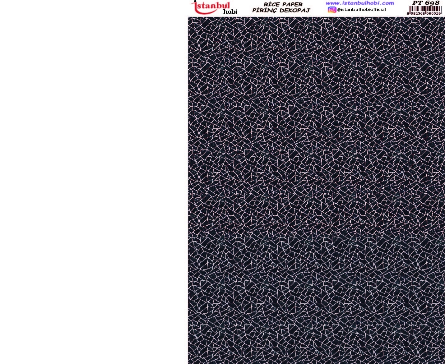 Pirinç Dekopaj Kağıdı, el sanatları tutkunları ve DIY (Kendin Yap) projeleri için mükemmel bir tercihtir. Yüksek kaliteli ve dayanıklı bu özel kağıt, yüzeylere kolayca yapışarak size mükemmel sonuçlar sunar. Ahşap, cam, seramik, metal ve kumaş gibi birçok yüzeyde kullanabileceğiniz Pirinç Dekopaj Kağıdı ile özgün ve zarif tasarımlar yaratabilirsiniz. Pirinç Dekopaj Kağıdı, çeltik sapından yapılan ince kâğıt üzerine basılı olup, pirinç dekopaj çalışmaları için kullanılmaktadır. Dekopaj tutkalı ile istediğiniz alana kolayca yapıştırıp üzerine boyama, rölyef, varak ve vernik uygulayabilirsiniz. Özellikler: