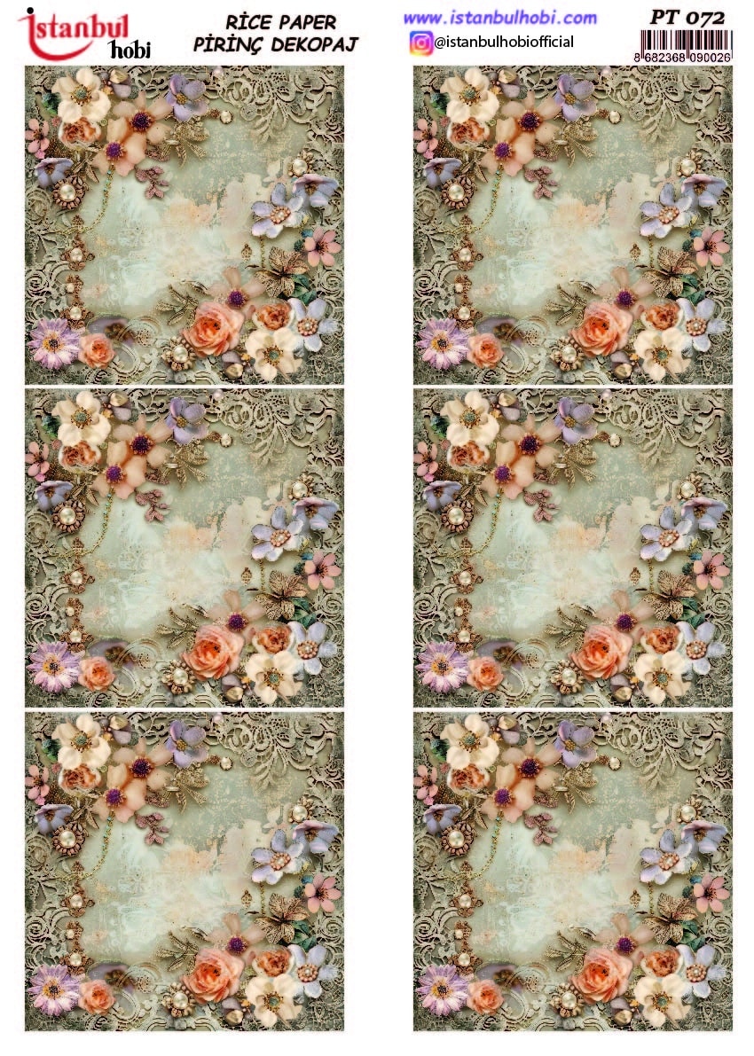 Pirinç Dekopaj Kağıdı, el sanatları tutkunları ve DIY (Kendin Yap) projeleri için mükemmel bir tercihtir. Yüksek kaliteli ve dayanıklı bu özel kağıt, yüzeylere kolayca yapışarak size mükemmel sonuçlar sunar. Ahşap, cam, seramik, metal ve kumaş gibi birçok yüzeyde kullanabileceğiniz Pirinç Dekopaj Kağıdı ile özgün ve zarif tasarımlar yaratabilirsiniz. Pirinç Dekopaj Kağıdı, çeltik sapından yapılan ince kâğıt üzerine basılı olup, pirinç dekopaj çalışmaları için kullanılmaktadır. Dekopaj tutkalı ile istediğiniz alana kolayca yapıştırıp üzerine boyama, rölyef, varak ve vernik uygulayabilirsiniz. Özellikler: