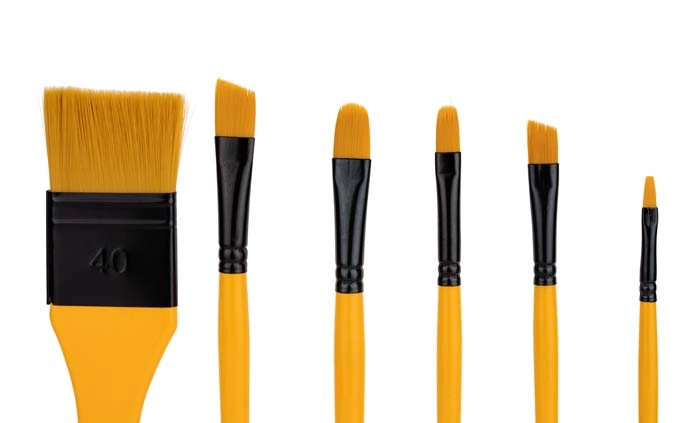 Fırçalar, dayanıklı ve esnek sentetik kıl uçludur. Bu kıllar, boyayı iyi tutar ve kolay temizlenir. -