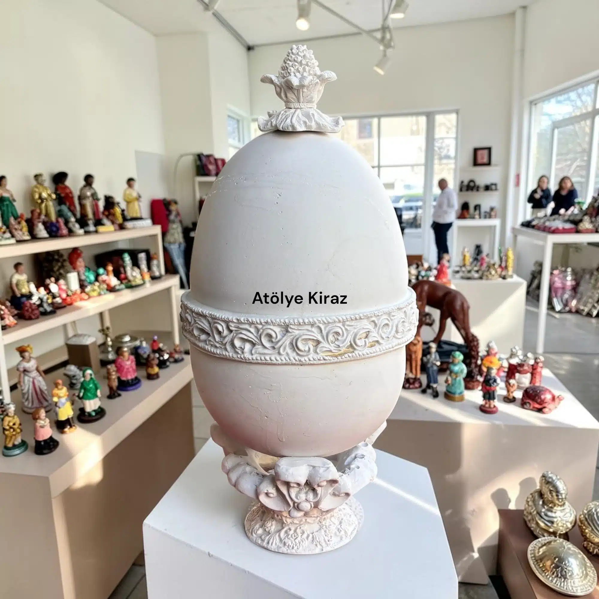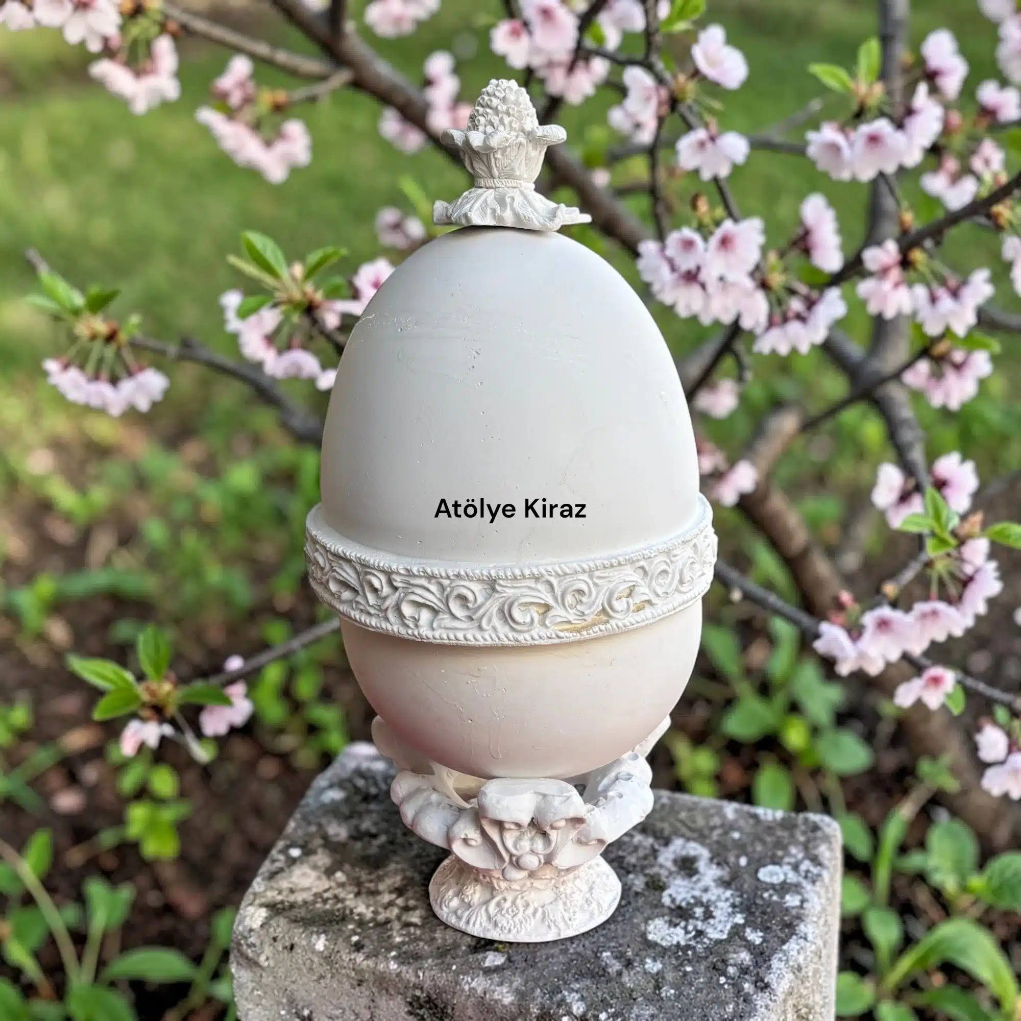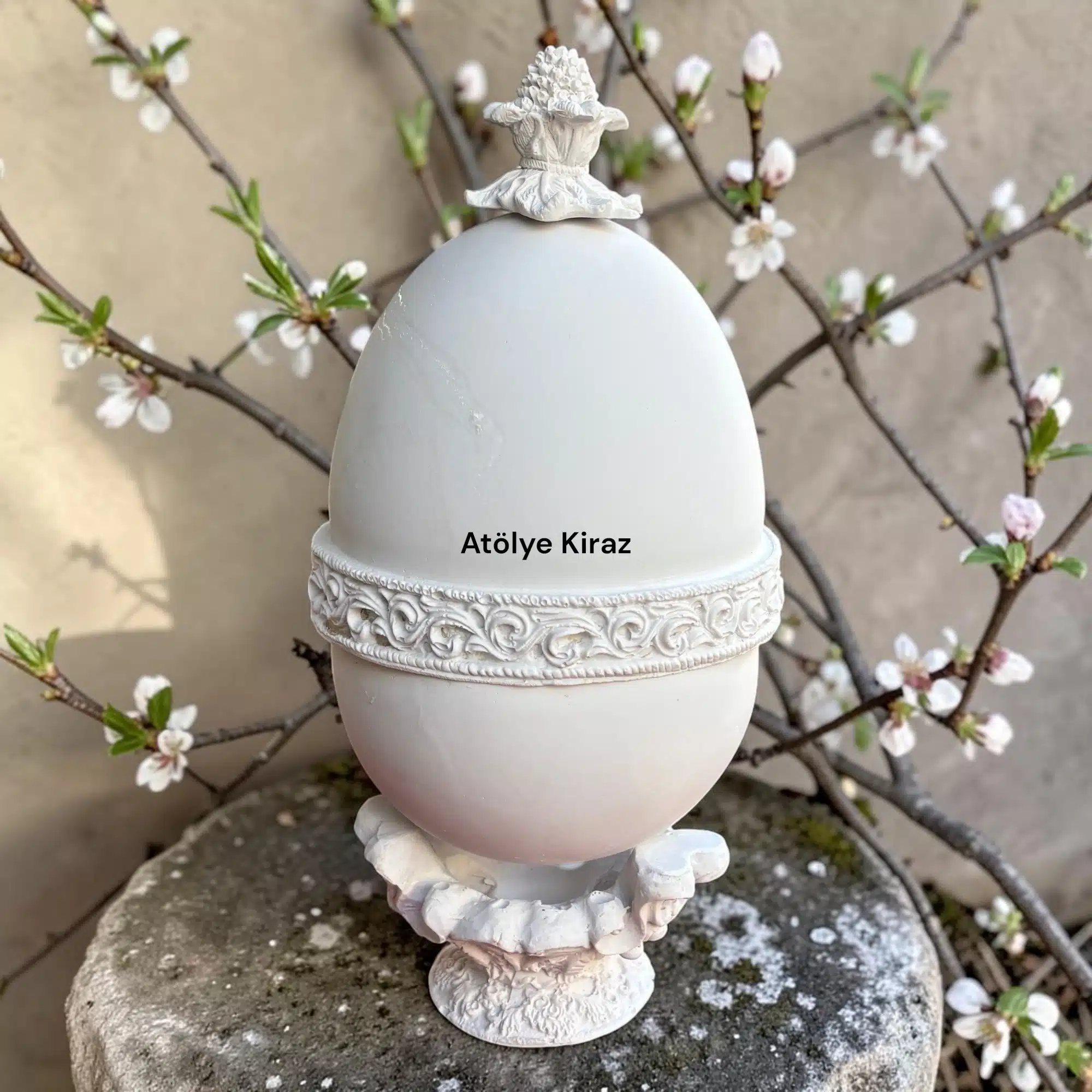 Siz sadece kendi özgün temanızı hayal edin, renkleri seçin ve büyük bir tutkuyla üretin; biz Atölye Kiraz kalitesiyle siparişlerinizi kapınıza kadar getirelim. Ürünlerimizi kargo sürecinde hiçbir zarar görmeden, kırılmadan sapasağlam alıcıya ulaştırılmasını çok önemsiyoruz. Türkiye ve Dünyanın tüm ülkelerine güvenli ve hızlı gönderim yapılmaktadır. Tüm ürünler sağlam ve dayanıklı malzemeler ile özenle paketlenip, güçlendirilmiş mukavva koli içine konularak gönderilmektedir. Yaşam alanlarınıza asil ve romantik bir şıklık katmak için bu işlevsel saray stili dekoratif yumurta tasarımını fırsatları kaçırmadan hemen şimdi sepetinize ekleyin!