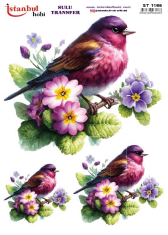 Sulu transfer kağıtları, bilinen en pratik ve etkileyici dekorasyon tekniklerinden biridir. Bu yöntemde, özel olarak basılmış desen, su yardımıyla kağıttan ayrılarak istediğiniz yüzeye kolayca yapışır. Sulu transfer üzerindeki her bir sulu transfer deseni, adeta bir sanat eseri titizliğiyle suluboya efekti verilerek tasarlanmıştır. Farklı boyutlardaki desen ve figürler projenize dinamik ve natürel bir görünüm kazandırır. Bu desenler, özellikle açık renkli ahşap tepsiler, beyaz seramik kaseler, cam kavanozlar veya krem rengi makyaj kutuları üzerinde harikalar yaratır. Vintage, shabby chic ve romantik tasarımları sevenler için ideal bir seçenektir.