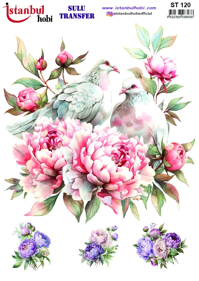 Sulu transfer kağıtları, bilinen en pratik ve etkileyici dekorasyon tekniklerinden biridir. Bu yöntemde, özel olarak basılmış desen, su yardımıyla kağıttan ayrılarak istediğiniz yüzeye kolayca yapışır. Sulu transfer üzerindeki her bir sulu transfer deseni, adeta bir sanat eseri titizliğiyle suluboya efekti verilerek tasarlanmıştır. Farklı boyutlardaki desen ve figürler projenize dinamik ve natürel bir görünüm kazandırır. Bu desenler, özellikle açık renkli ahşap tepsiler, beyaz seramik kaseler, cam kavanozlar veya krem rengi makyaj kutuları üzerinde harikalar yaratır. Vintage, shabby chic ve romantik tasarımları sevenler için ideal bir seçenektir.
