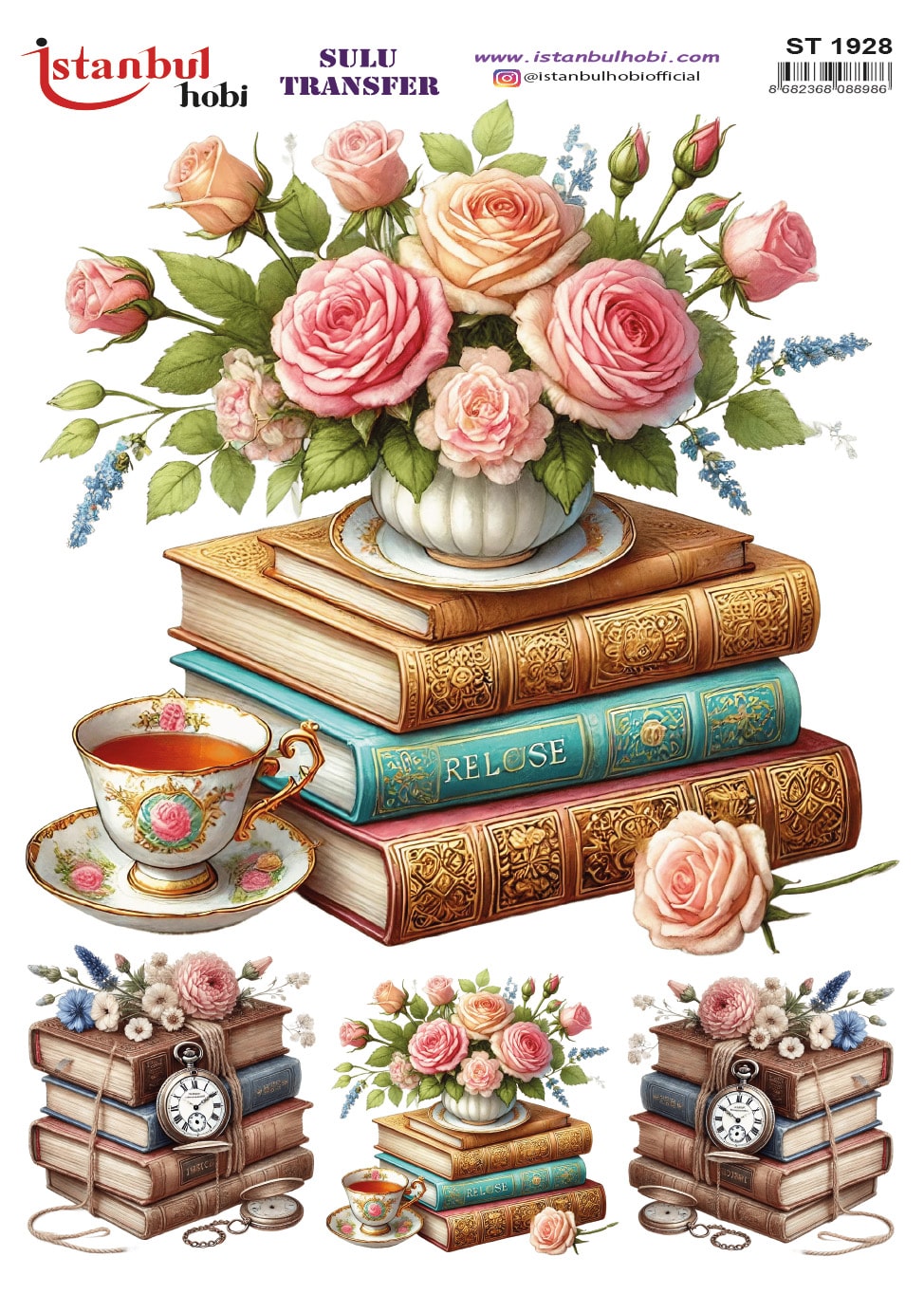 Evinizin her köşesine romantizm ve zarafet katacak, özel desen ve figürlerden oluşan sulu transfer ile tanışın. Renk tonlarındaki gerçekçi desen ve figürleri içeren bu tasarım, obje yüzeylerinizi dönüştürür. Eski mobilyalardan seramik objelere kadar pek çok yüzeyde kullanabilir, mekanlarınıza nostaljik ve şık bir hava katabilirsiniz.