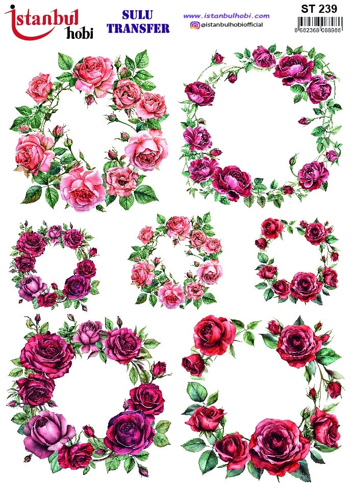 Sulu transfer kağıtları, bilinen en pratik ve etkileyici dekorasyon tekniklerinden biridir. Bu yöntemde, özel olarak basılmış desen, su yardımıyla kağıttan ayrılarak istediğiniz yüzeye kolayca yapışır. Sulu transfer üzerindeki her bir sulu transfer deseni, adeta bir sanat eseri titizliğiyle suluboya efekti verilerek tasarlanmıştır. Farklı boyutlardaki desen ve figürler projenize dinamik ve natürel bir görünüm kazandırır. Bu desenler, özellikle açık renkli ahşap tepsiler, beyaz seramik kaseler, cam kavanozlar veya krem rengi makyaj kutuları üzerinde harikalar yaratır. Vintage, shabby chic ve romantik tasarımları sevenler için ideal bir seçenektir.