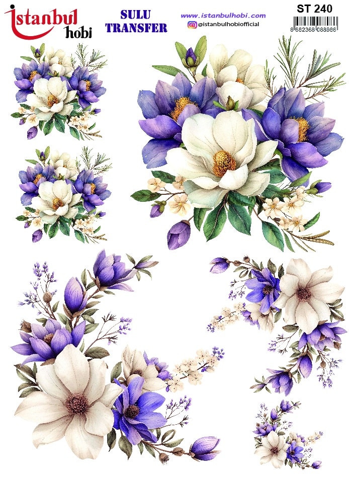 Sulu transfer kağıtları, bilinen en pratik ve etkileyici dekorasyon tekniklerinden biridir. Bu yöntemde, özel olarak basılmış desen, su yardımıyla kağıttan ayrılarak istediğiniz yüzeye kolayca yapışır. Sulu transfer üzerindeki her bir sulu transfer deseni, adeta bir sanat eseri titizliğiyle suluboya efekti verilerek tasarlanmıştır. Farklı boyutlardaki desen ve figürler projenize dinamik ve natürel bir görünüm kazandırır. Bu desenler, özellikle açık renkli ahşap tepsiler, beyaz seramik kaseler, cam kavanozlar veya krem rengi makyaj kutuları üzerinde harikalar yaratır. Vintage, shabby chic ve romantik tasarımları sevenler için ideal bir seçenektir.