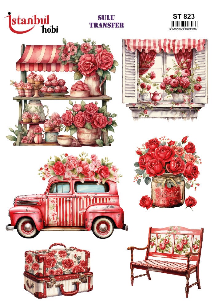 Evinizin her köşesine romantizm ve zarafet katacak, özel desen ve figürlerden oluşan sulu transfer ile tanışın. Renk tonlarındaki gerçekçi desen ve figürleri içeren bu tasarım, obje yüzeylerinizi dönüştürür. Eski mobilyalardan seramik objelere kadar pek çok yüzeyde kullanabilir, mekanlarınıza nostaljik ve şık bir hava katabilirsiniz.