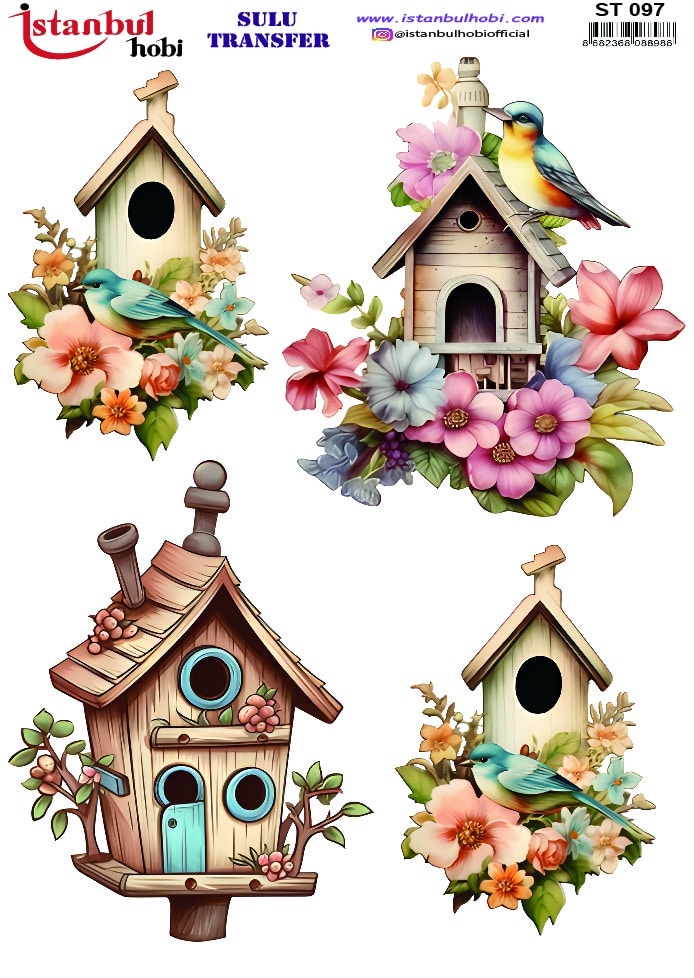 Sulu transfer kağıtları, bilinen en pratik ve etkileyici dekorasyon tekniklerinden biridir. Bu yöntemde, özel olarak basılmış desen, su yardımıyla kağıttan ayrılarak istediğiniz yüzeye kolayca yapışır. Sulu transfer üzerindeki her bir sulu transfer deseni, adeta bir sanat eseri titizliğiyle suluboya efekti verilerek tasarlanmıştır. Farklı boyutlardaki desen ve figürler projenize dinamik ve natürel bir görünüm kazandırır. Bu desenler, özellikle açık renkli ahşap tepsiler, beyaz seramik kaseler, cam kavanozlar veya krem rengi makyaj kutuları üzerinde harikalar yaratır. Vintage, shabby chic ve romantik tasarımları sevenler için ideal bir seçenektir.