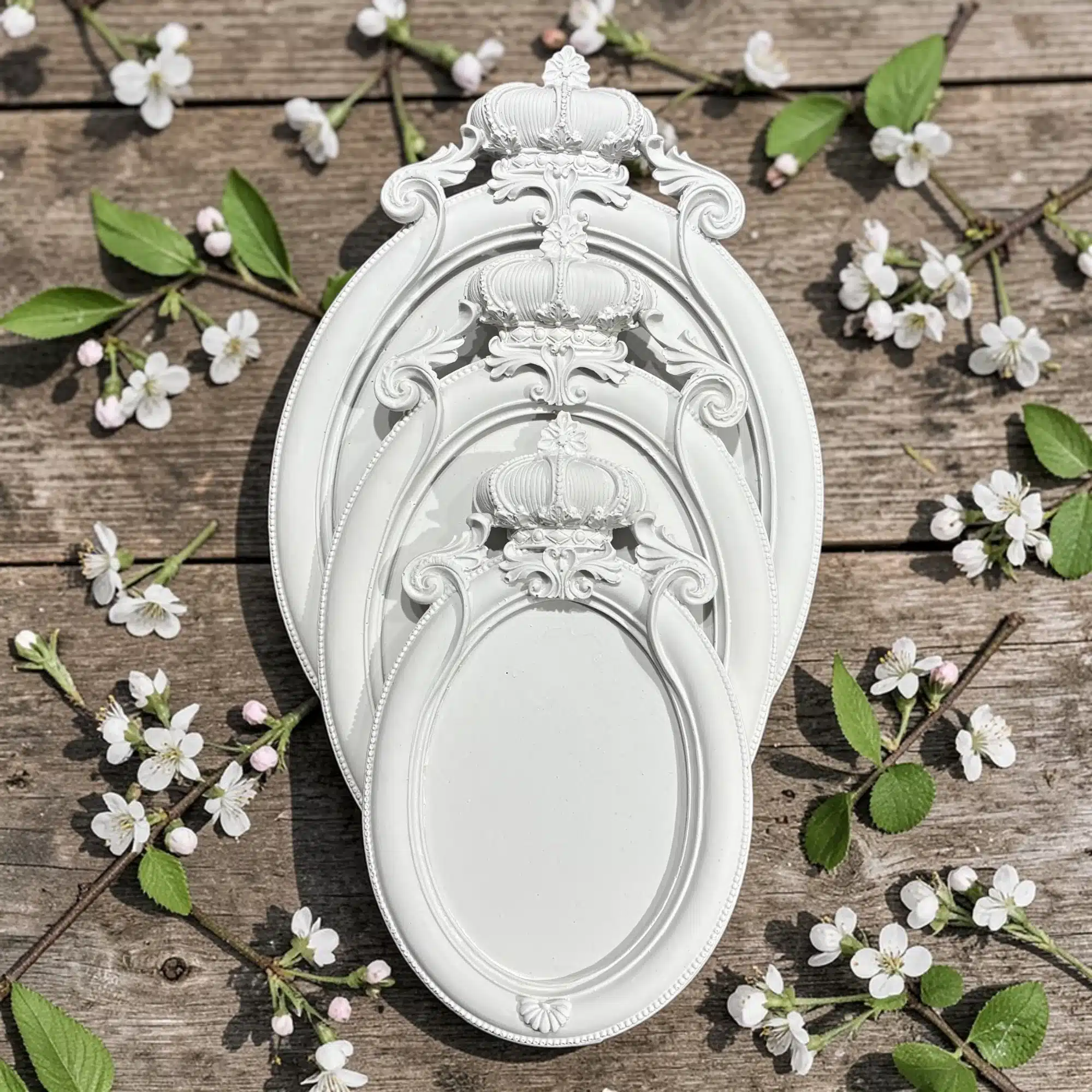 Bu estetik, gösterişli ve çok yönlü taçlı oval çerçeve takımı, hayal gücünüzün sınırlarını zorlayacak kadar geniş bir kullanım alanına sahiptir. Salonunuzdaki boş bir duvarı sanatsal bir galeriye çevirmek, antrenizi süslemek veya yatak odanızda şık bir ayna köşesi yaratmak için bu seti merkez objesi olarak gönül rahatlığıyla kullanabilirsiniz. Çerçevelerin iç kısımlarına ayna kestirerek mekanınızı genişletebilir, özel fotoğraflarınızı yerleştirebilir veya içlerine döküm rölyef desenler ekleyerek bu taçlı oval çerçeve takımı setini eşsiz panolara dönüştürebilirsiniz. Dilerseniz arkalarına ahşap zemin monte ederek şık sunum tepsileri olarak da değerlendirebilirsiniz.
