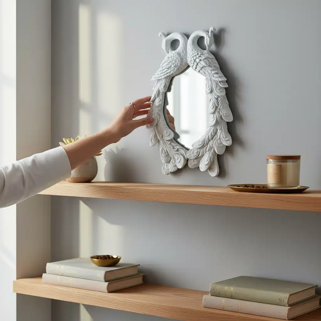 Sınırsız bir kullanım çeşitliliğine sahip olan bu tavus kuşu figürlü ayna çerçevesi, evinizin her köşesinde şık ve asil bir amaca hizmet edecektir. Yatak odanızda makyaj masanızın arkasında, antre dresuarınızın üzerinde veya salonunuzdaki galeri duvarında sergileyerek göz alıcı bir şıklık yaratmanızı sağlayan bu harika tavus kuşu figürlü ayna çerçevesi, ortamın aurasını anında değiştirir. Kuşların ihtişamlı tüylerine altın, gümüş veya bakır varak uygulamaları yaparak lüks ve antika görünümlü bir başyapıt elde edebilirsiniz.