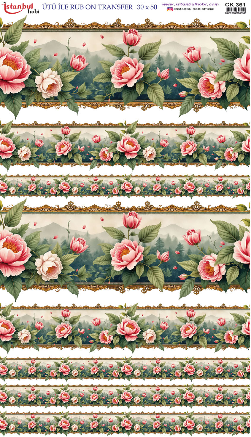 Ütü ile Rub On Transfer Kağıdı: Dekoratif Süsleme Kağıdı – CK361-İST | 30×50 cm