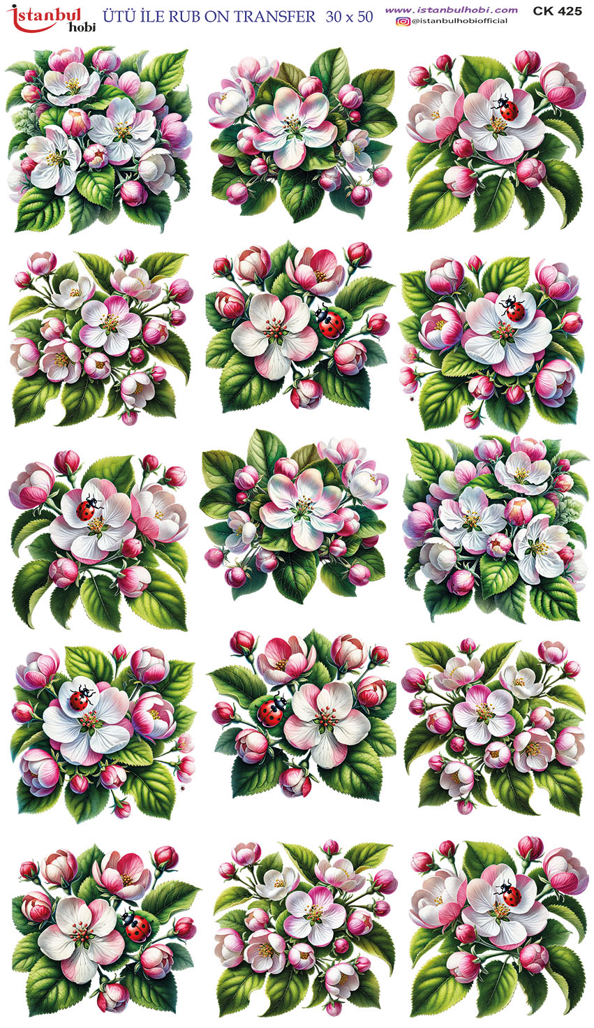 Ütü ile Rub On Transfer Kağıdı: Dekoratif Süsleme Kağıdı – CK425-İST | 30×50 cm