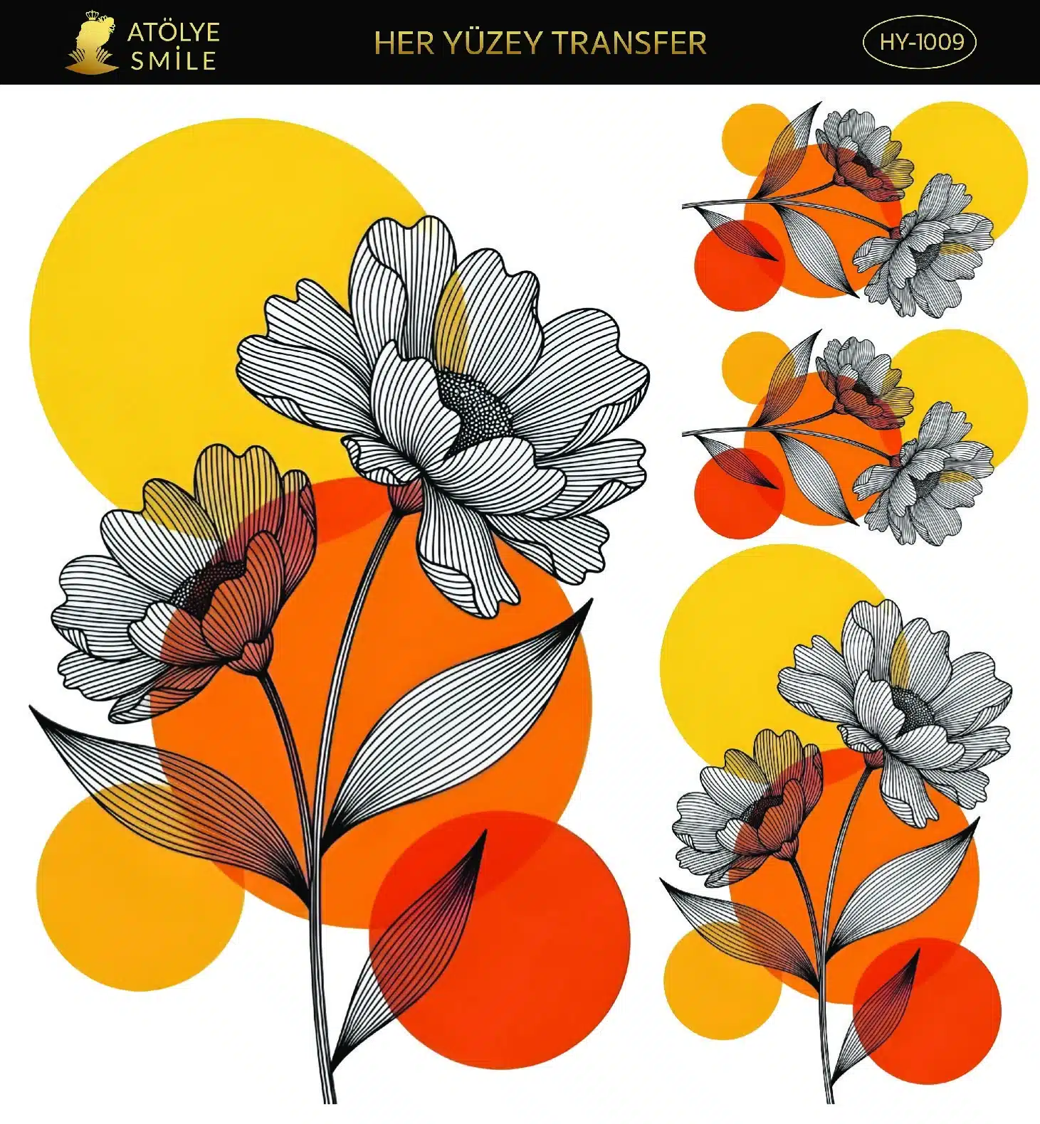 Ütü ile Rub On Transfer Kağıdı, ısı yardımıyla tekstil ve hobi yüzeylerine desen aktarmanızı sağlayan yeni nesil ve pratik bir dekoratif süsleme çözümüdür. Sanatsal çiçek ve çaydanlık motifleri ile projelerinize anında şıklık katar.