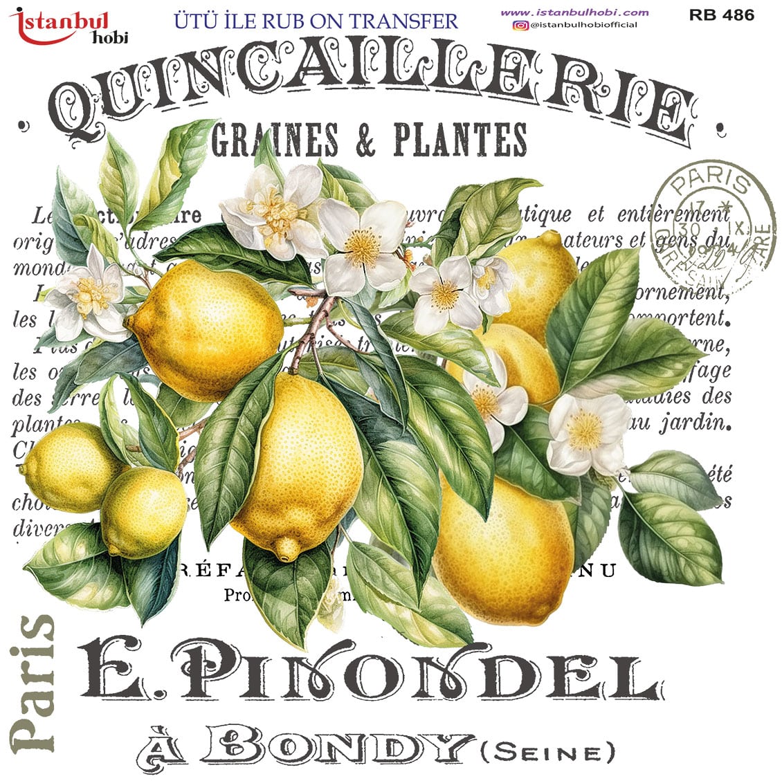 Ütü ile Rub On Transfer Kağıdı: Dekoratif Süsleme Kağıdı – RB486 | 30×30 cm