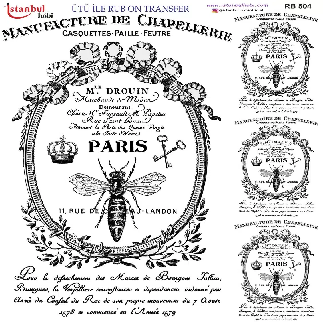 Ütü ile Rub On Transfer Kağıdı: Dekoratif Süsleme Kağıdı – RB504 | 30×30 cm
