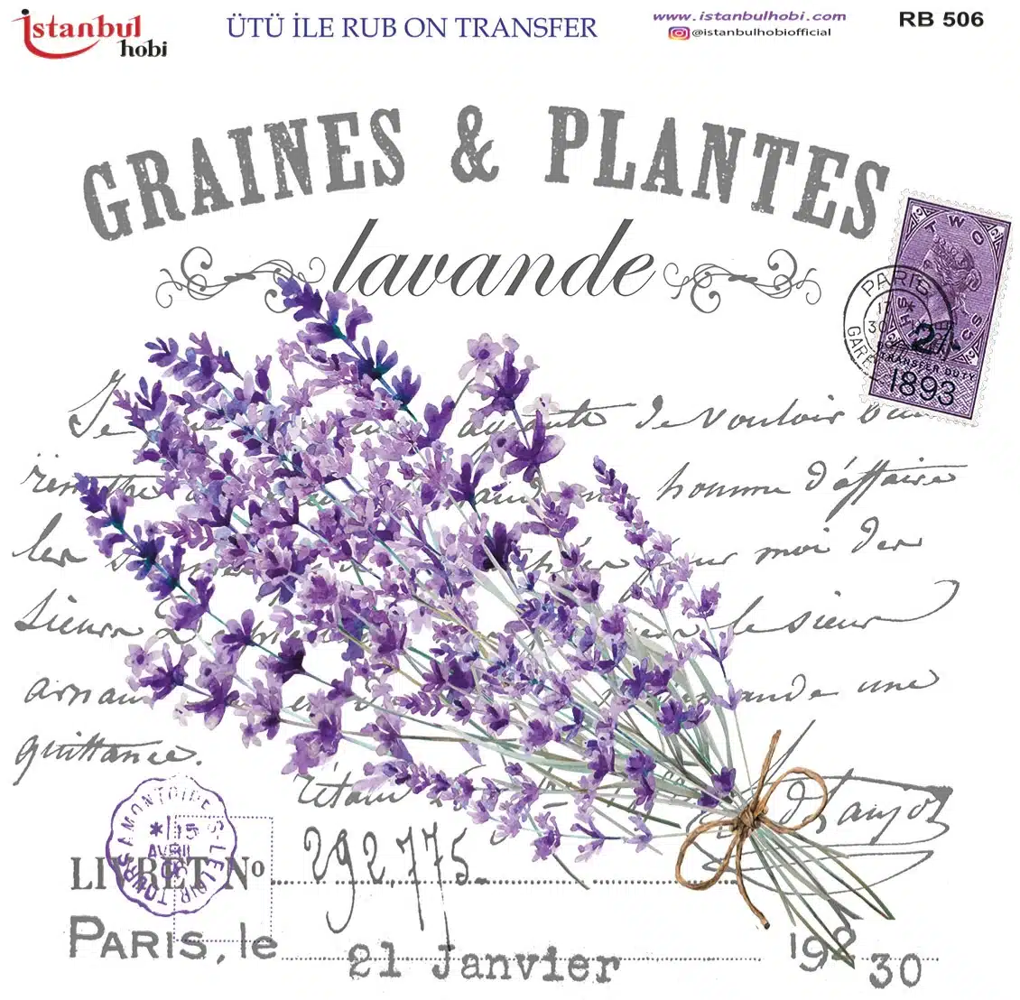 Ütü ile Rub On Transfer Kağıdı: Dekoratif Süsleme Kağıdı – RB506 | 30×30 cm