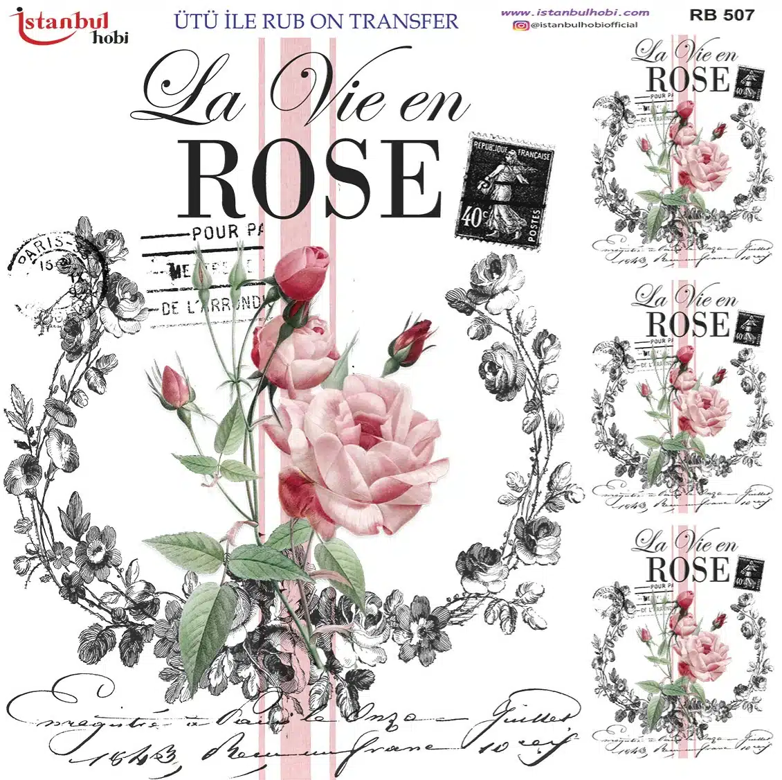 Ütü ile Rub On Transfer Kağıdı: Dekoratif Süsleme Kağıdı – RB507 | 30×30 cm